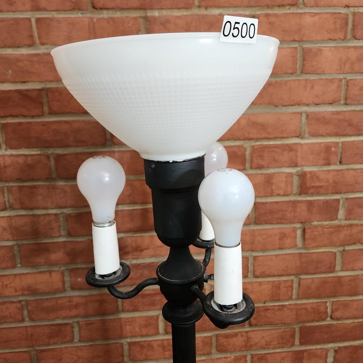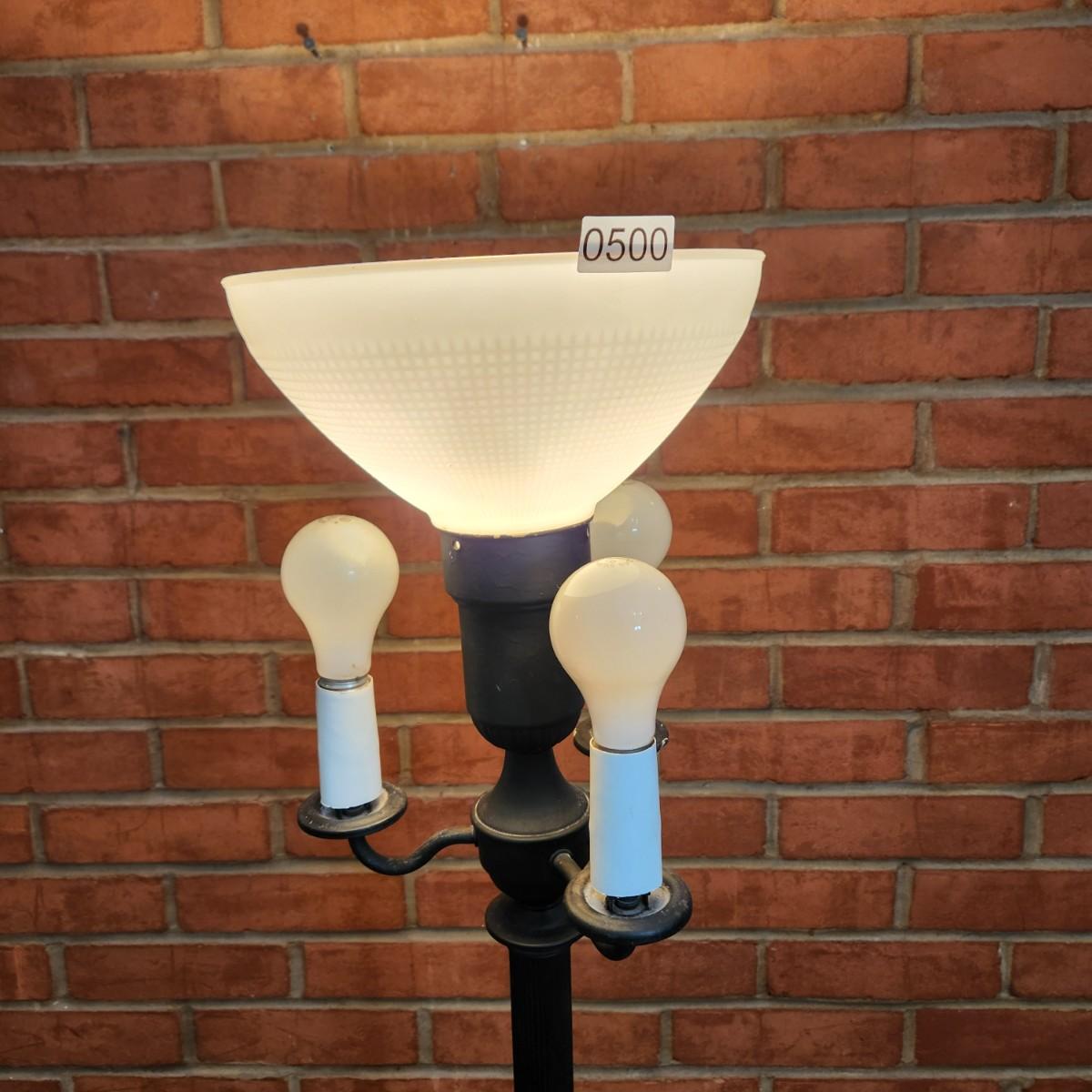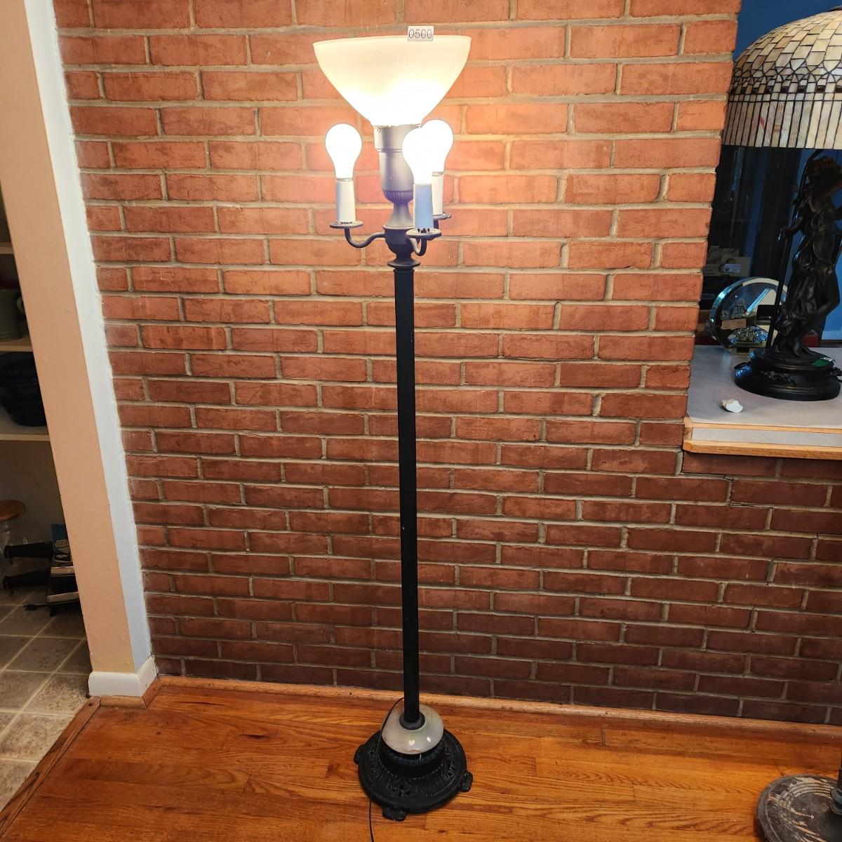 Vintage Torchiere Floor lamp Metal with Glass Base 3 way Mogul Center