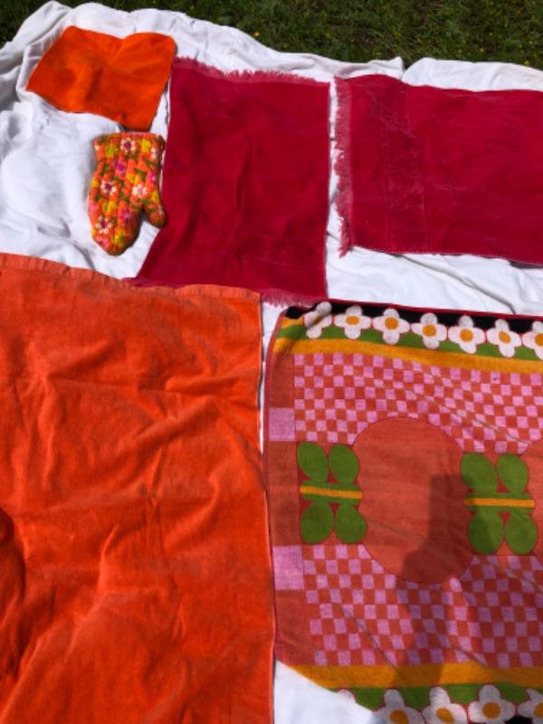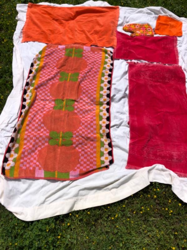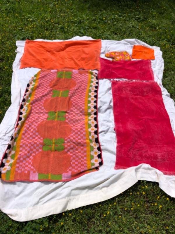 Vintage Retro towel lot w/ terry potholder, Pink & Red & Orange