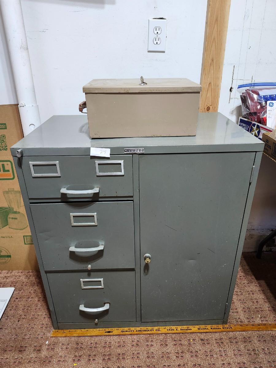 Vintage TOWER Safe Storage File Cabinet and lock box