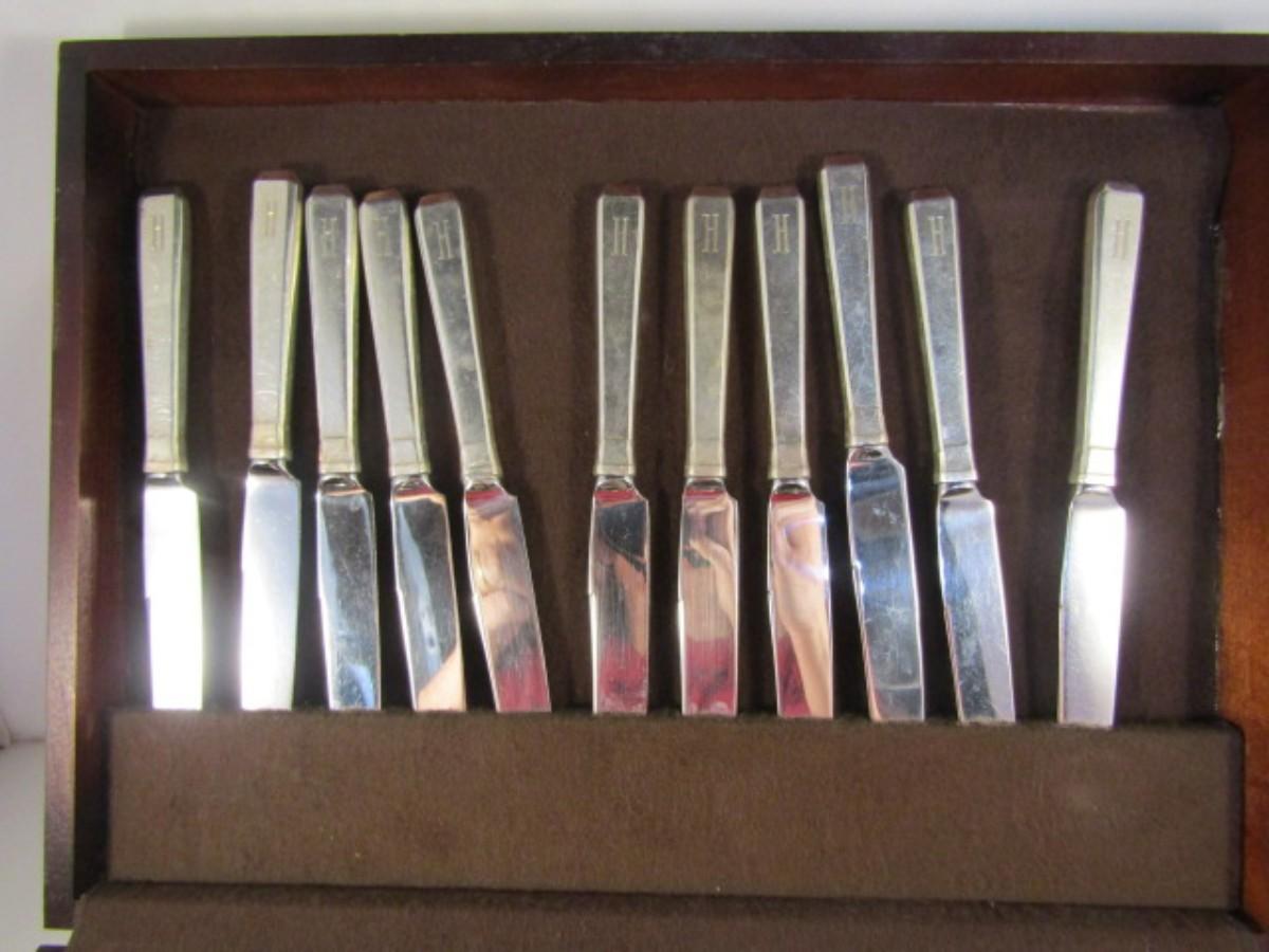 Vintage Towle Sterling Silver Flatware Set in Wood Safe Keep Box 87 pcs. 2700 grams knives were not weighed or part of total weight