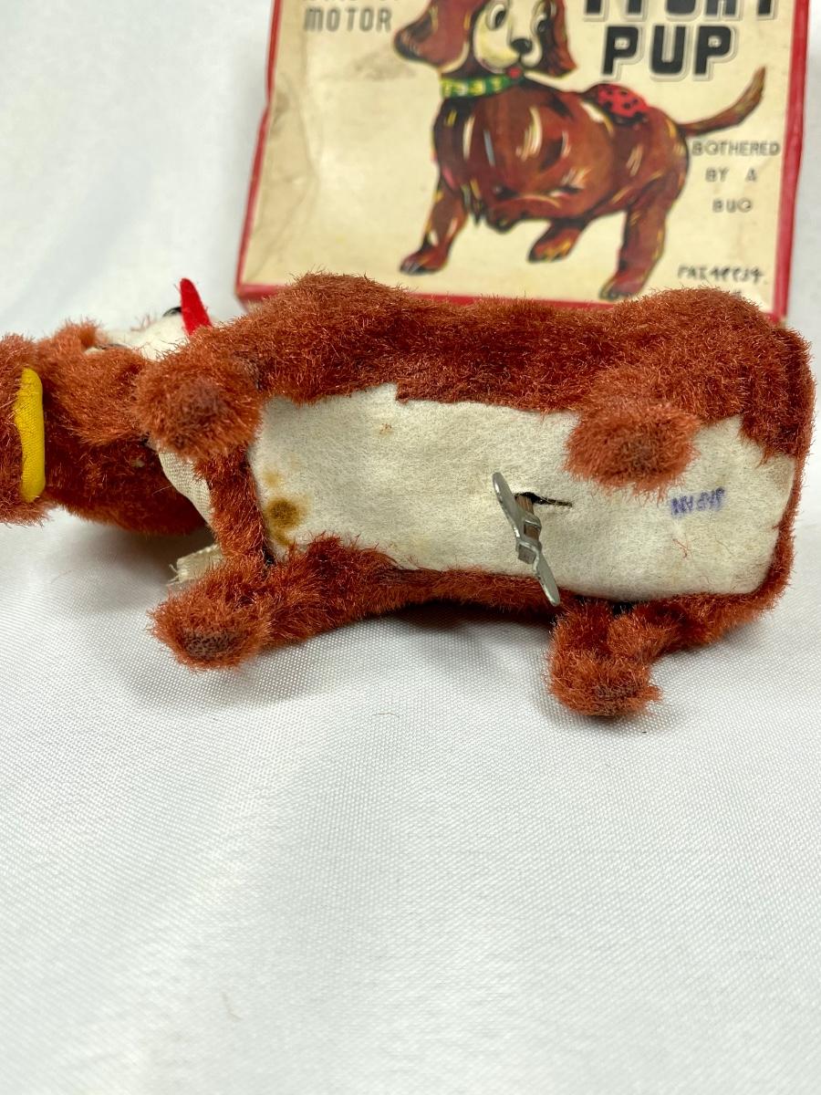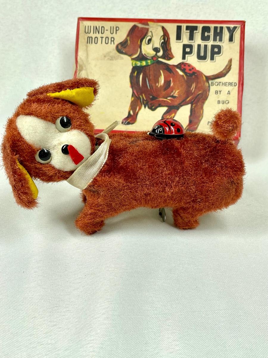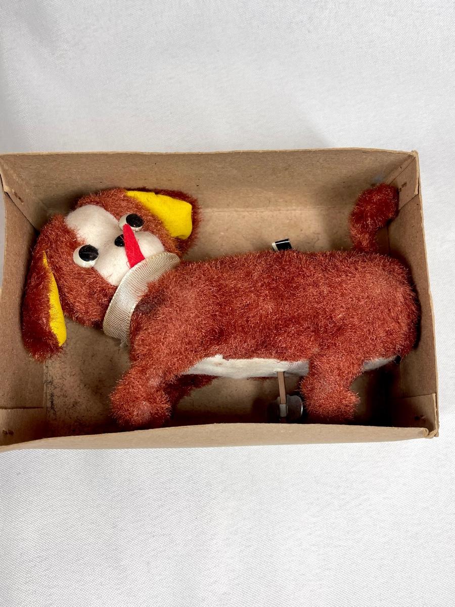 What a cute toy! This worked for me the first time I wound it. The little bug travels up and down his back and the dog will turn his head back and forth. The next time I tried it it didn’t work. There may be an easy fix but it worked well for me once. Cute addition to any vintage toy collection!