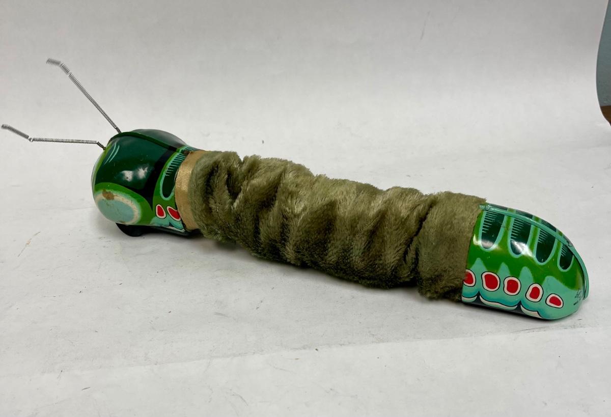 Rare Vintage Green Mechanical Life Caterpiller Wind Up Tin Litho Toy Daiya Japan