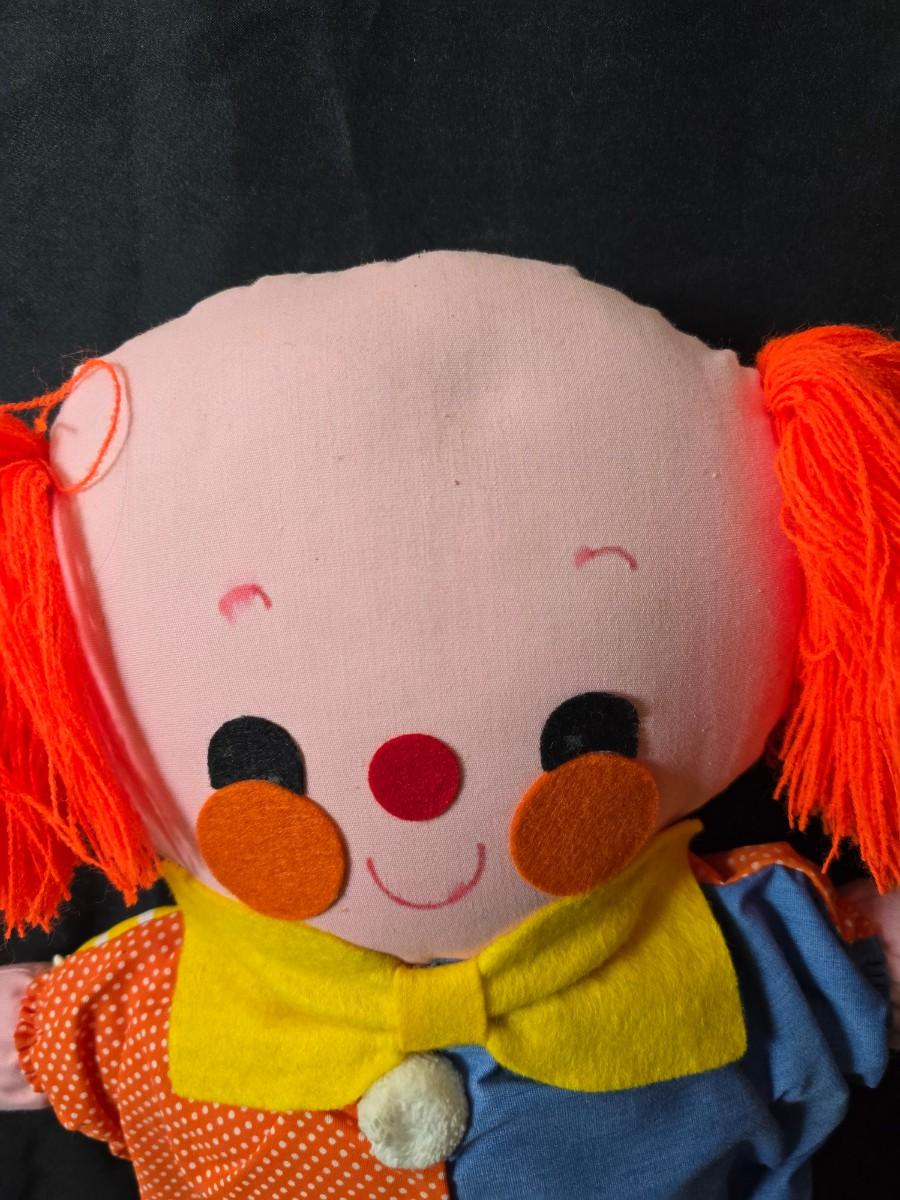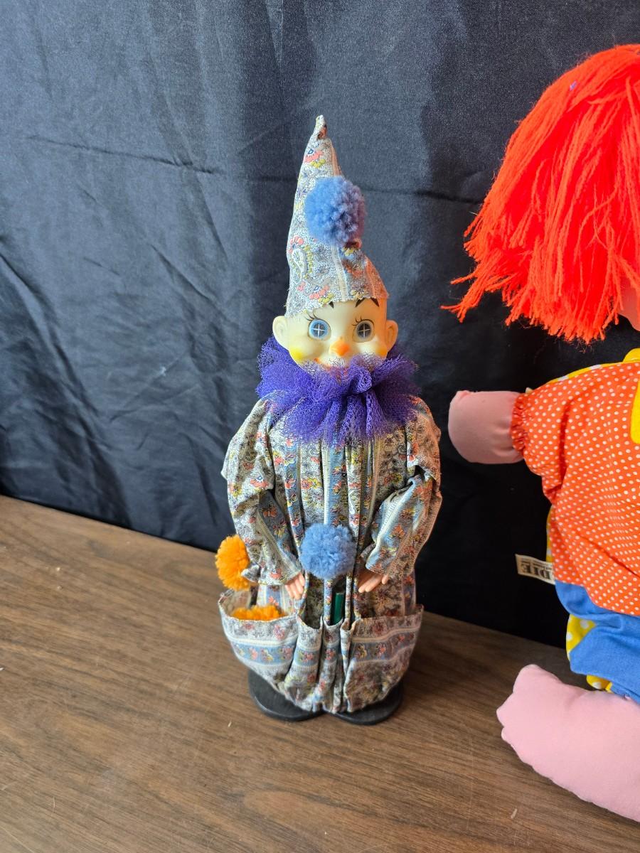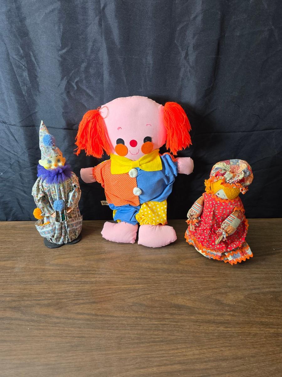 Vintage toy clowns - Edie plush clown - and a handmade holly hobby doll