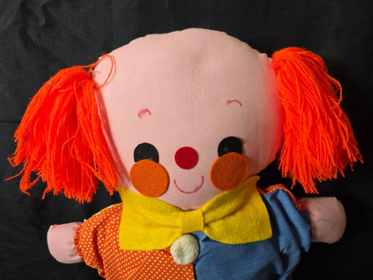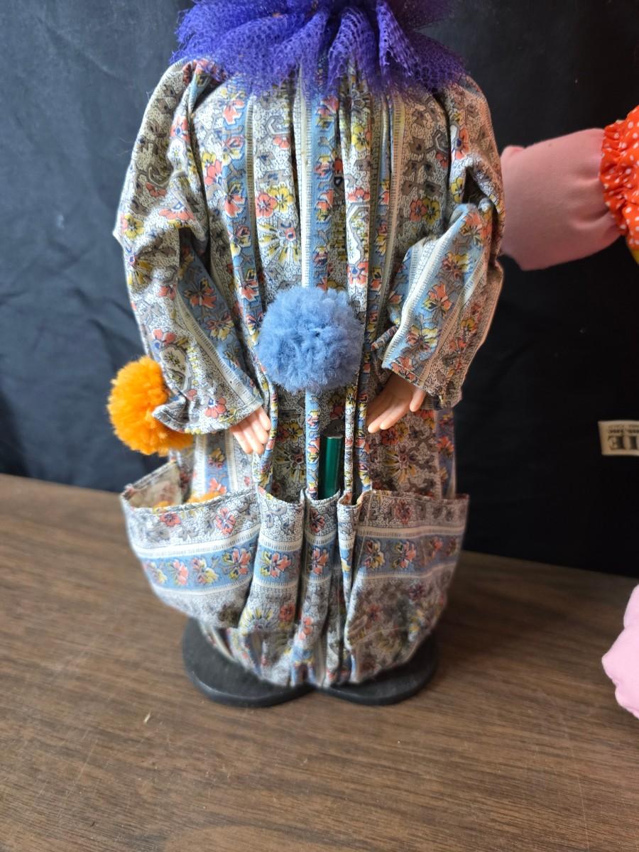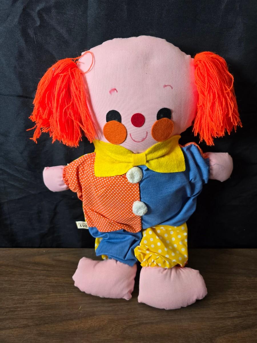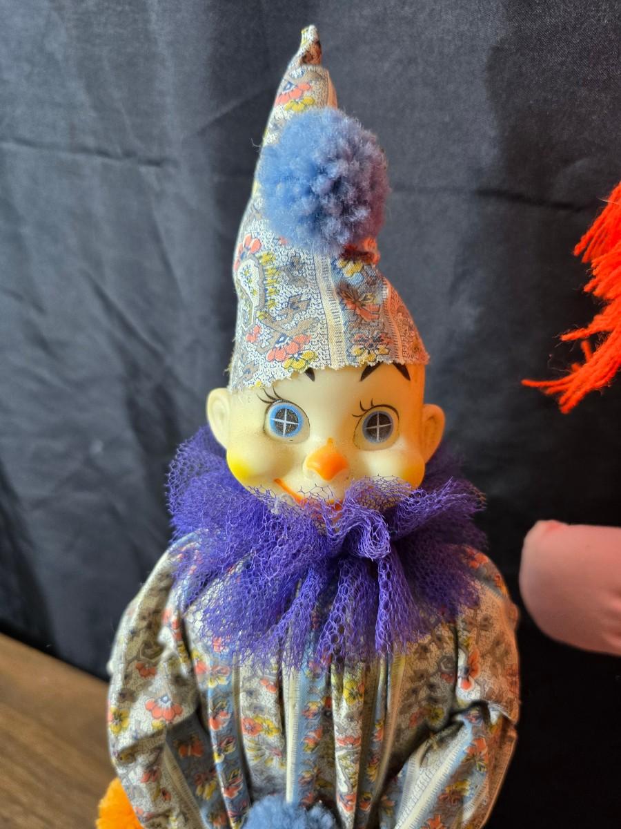 Vintage toy clowns - Edie plush clown - and a handmade holly hobby doll