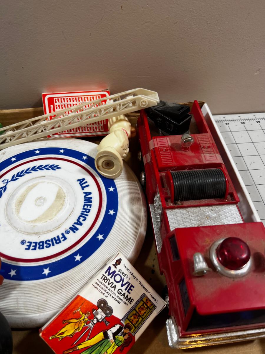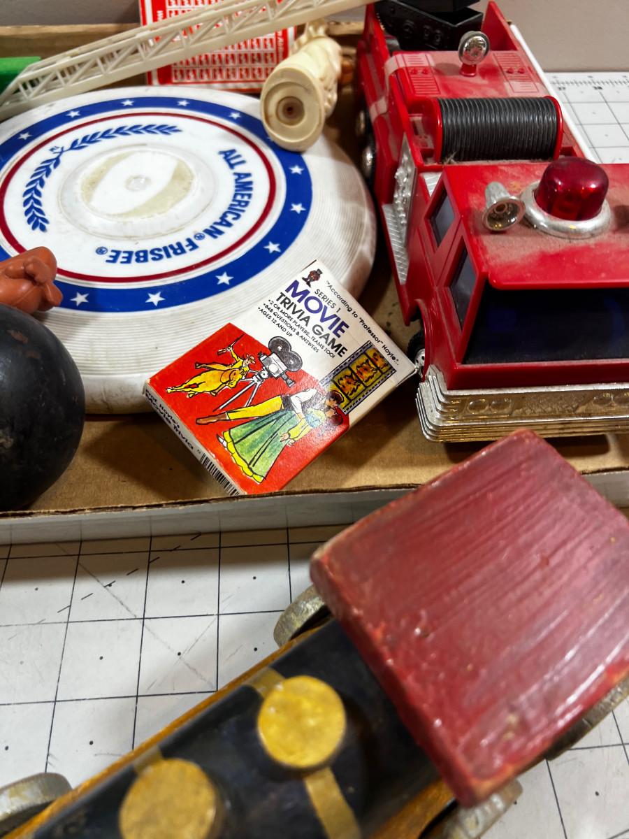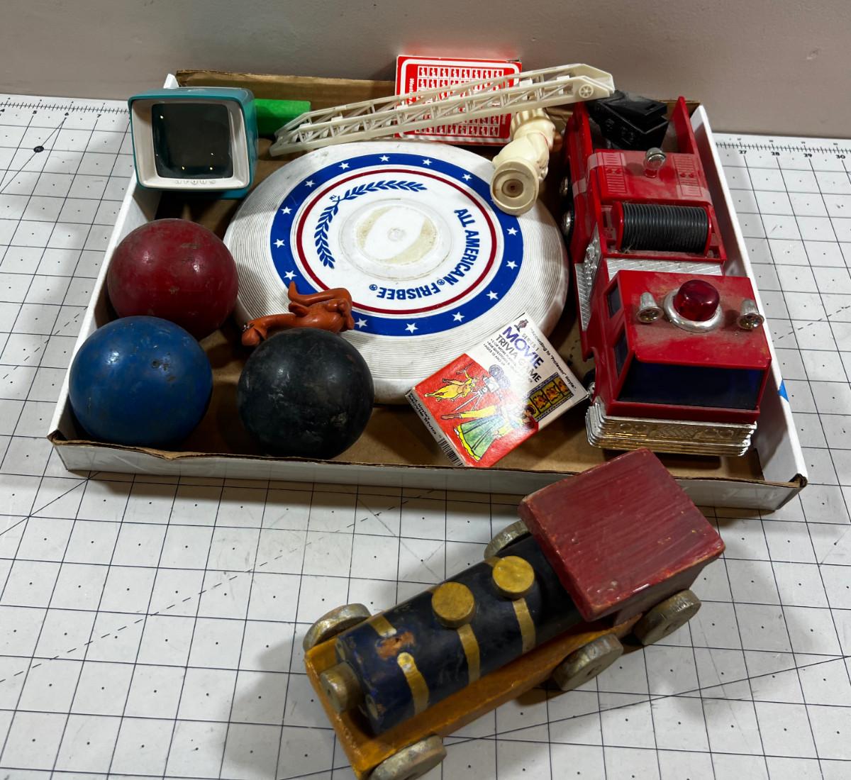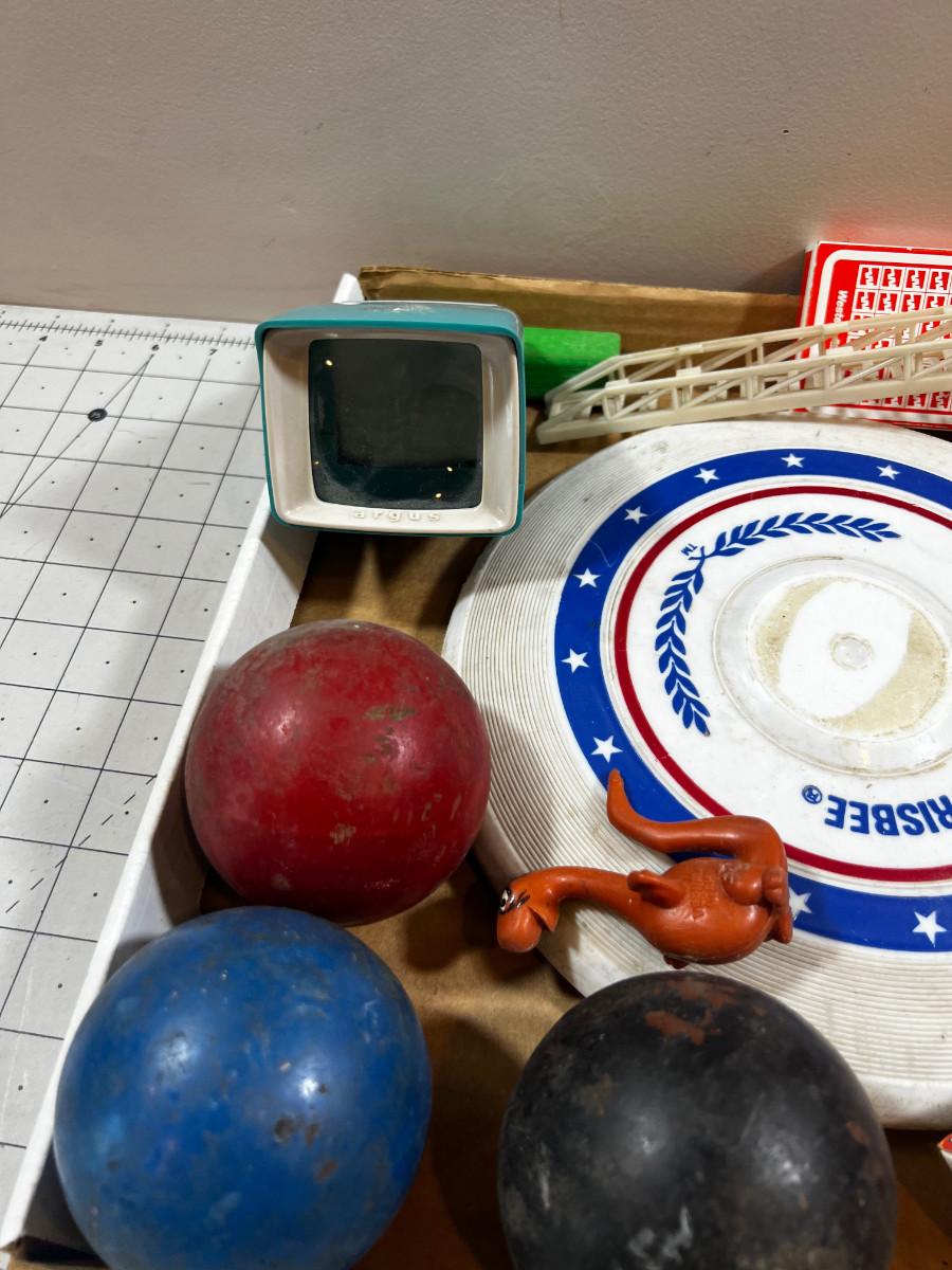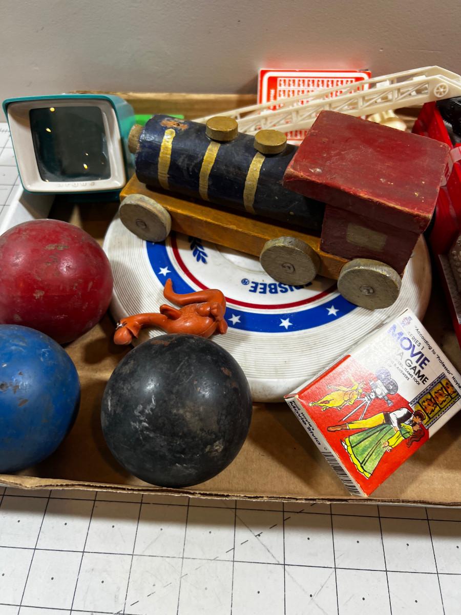 Vintage Toy Lot: Bocce Ball, Wood Train, Frisbee etc.