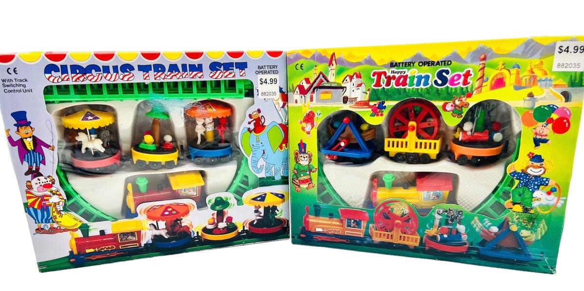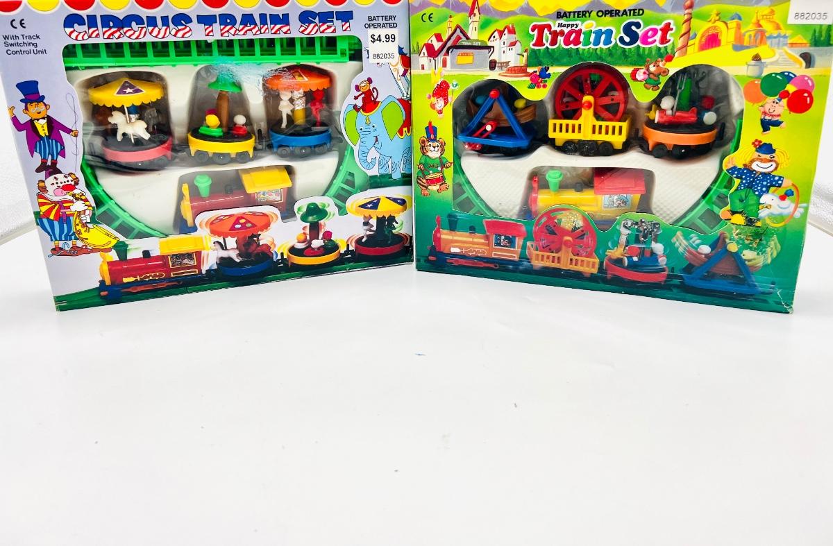 Two Vintage plastic Toy train sets. One Happy Train and One Circus train set. *Not tested*
