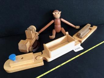 Vintage Toy Wooden Tug Boat Car & Monkey Lot!