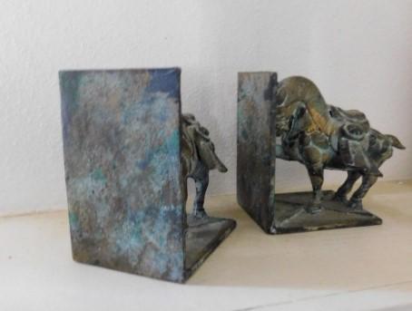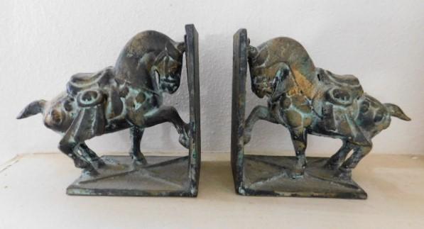 Vintage Toyo Armored Warrior Horse Metal Bookends 5"x6"