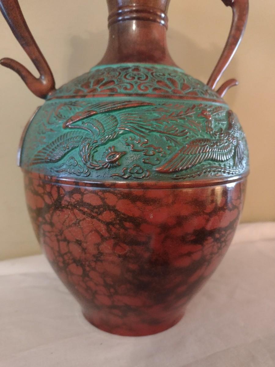 Vintage Toyo Japanese Bronze Finish Vase with Dragon Handles