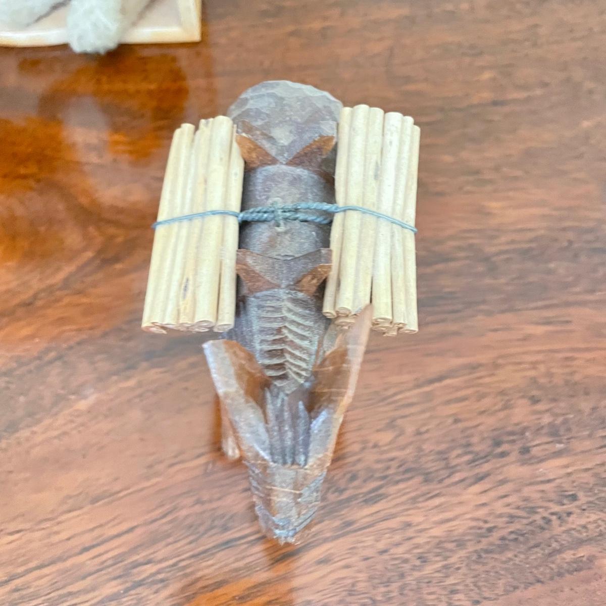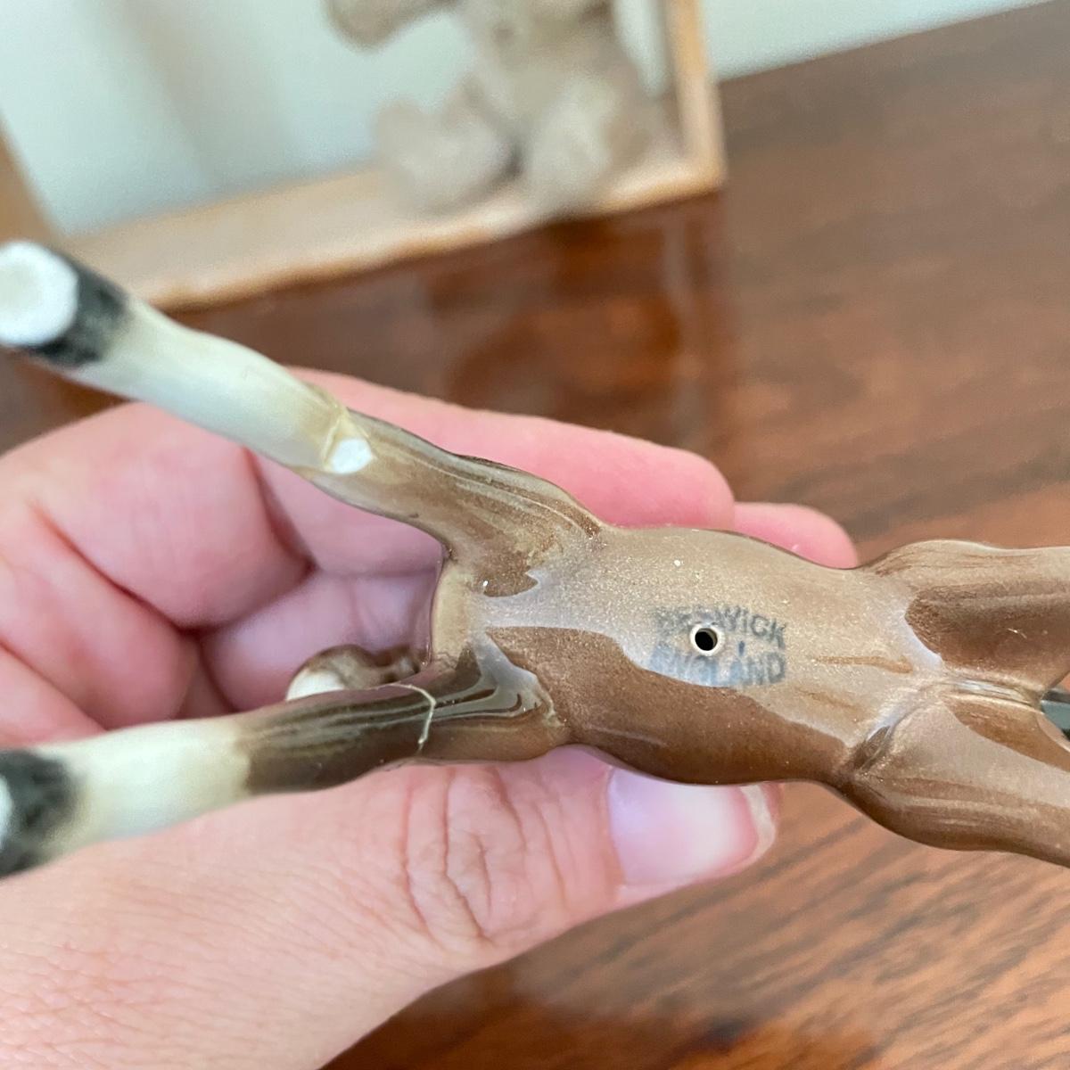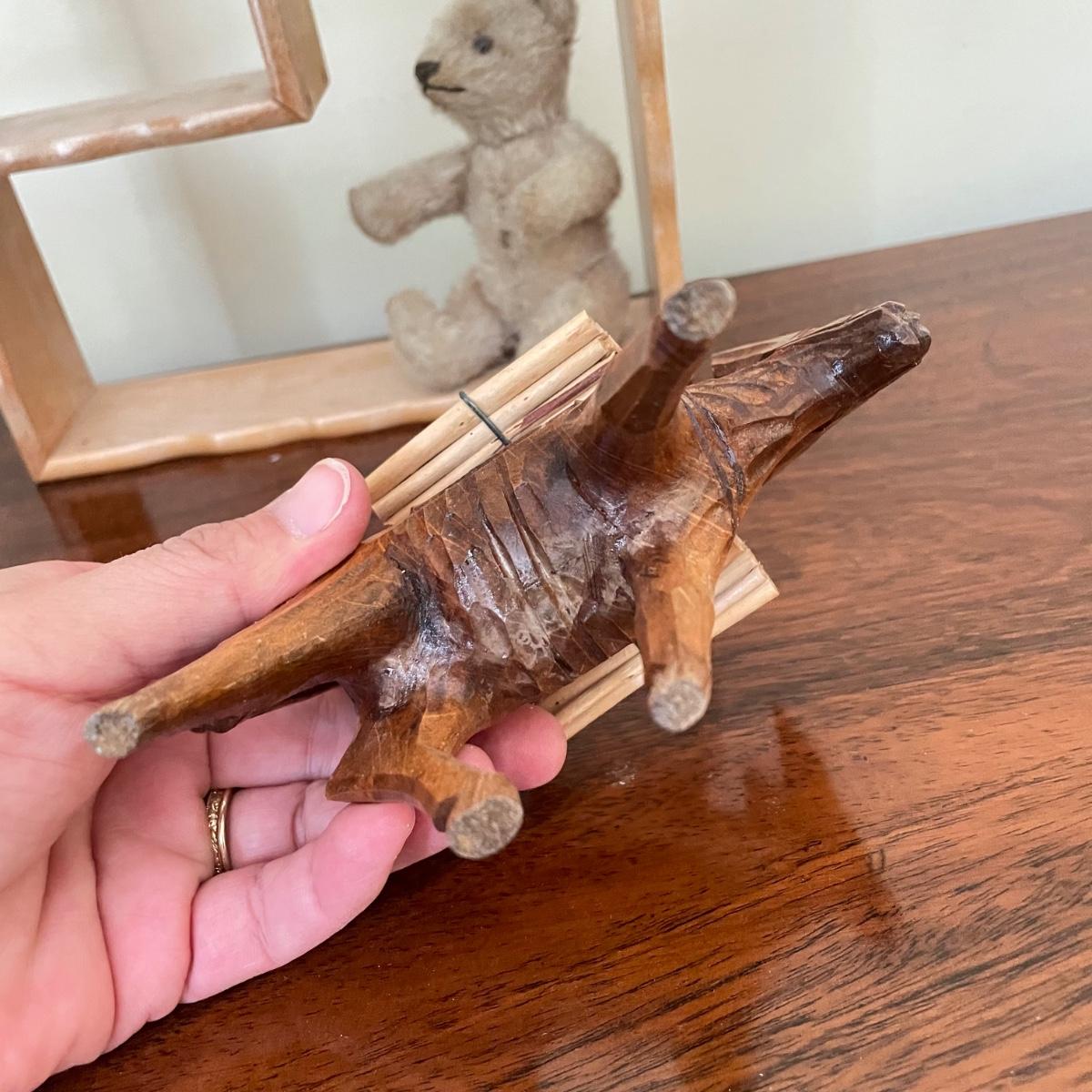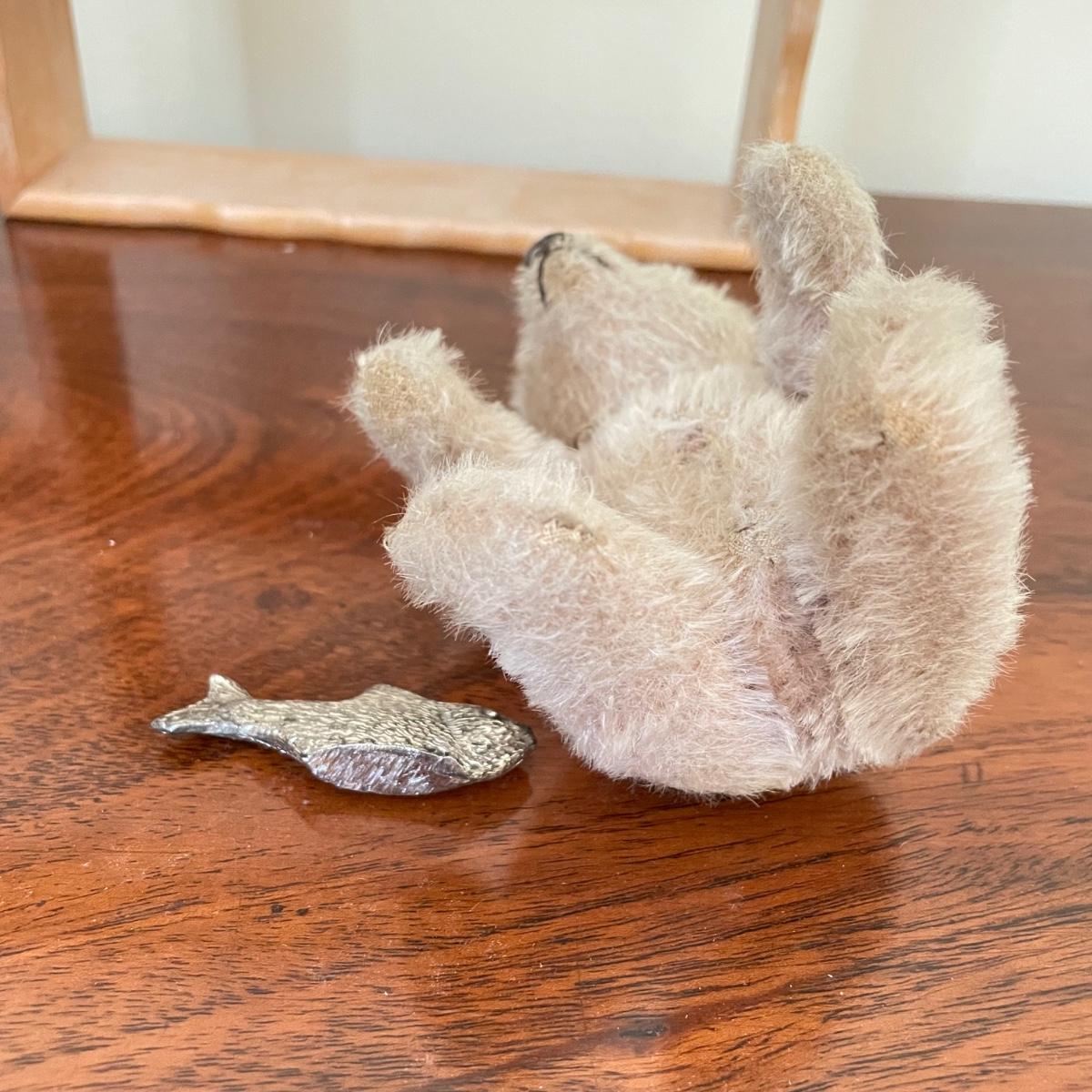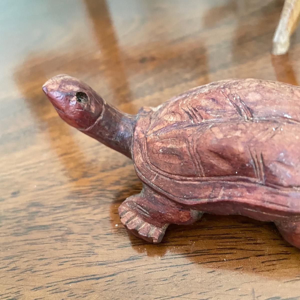 Two adorable vintage tiny bobble heads - the hippo and dog are made of wood, as well as the donkey and turtle. Lot includes a few ceramic pieces like the bunny, pot, English horse, and the mouse with a leather tail. Lot also includes a vintage stuffed bear with posable limbs and a metal fish that appears to be pewter. The horse has two front legs that have been repaired. The display shelf puzzles into itself and measures 13” x 13.5”. See images. Shipping available.