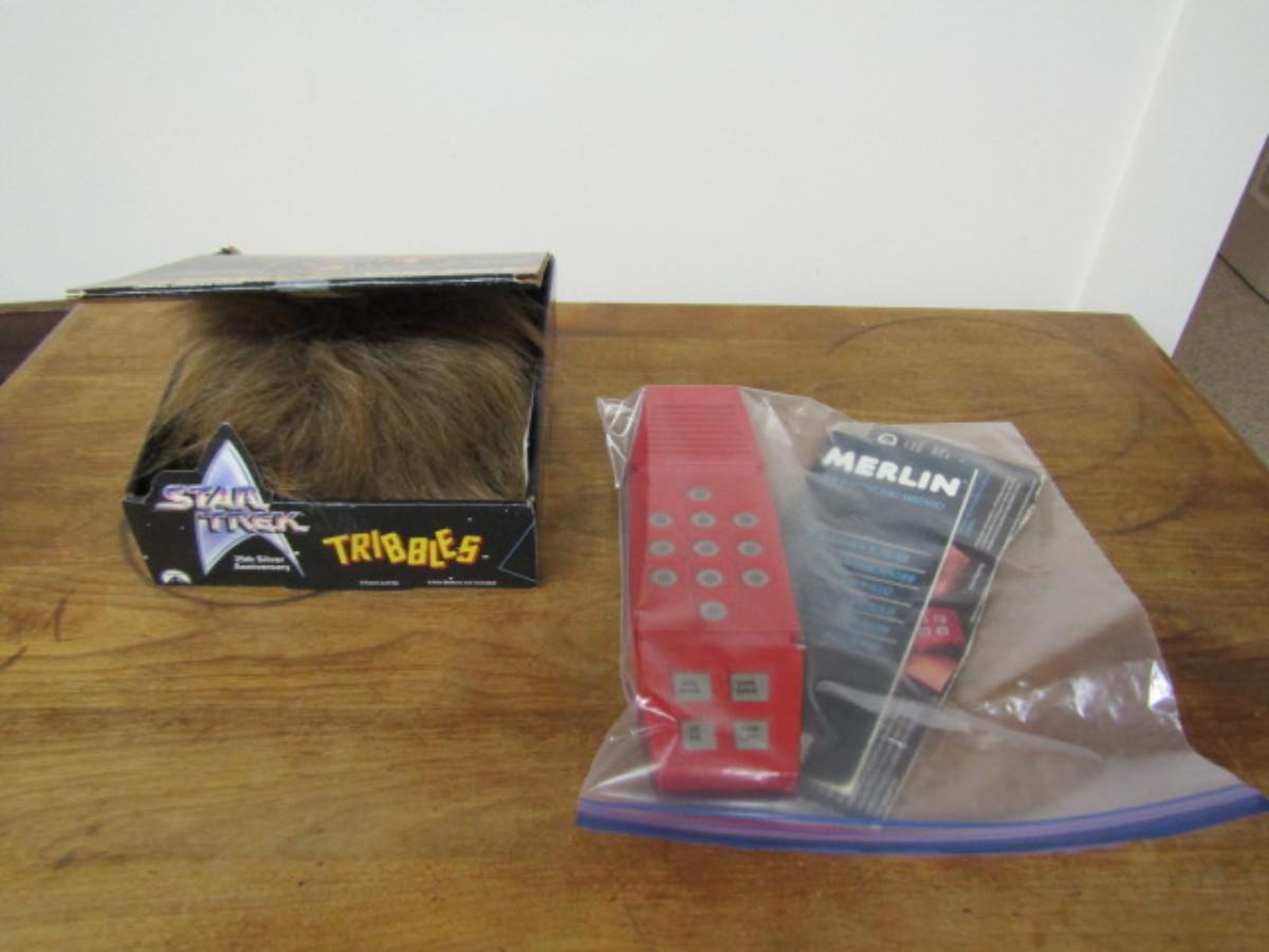 Vintage Toys- Star Trek Tribbles and Merlin Electronic Wizard- Untested. Merlin is missing the battery cover.