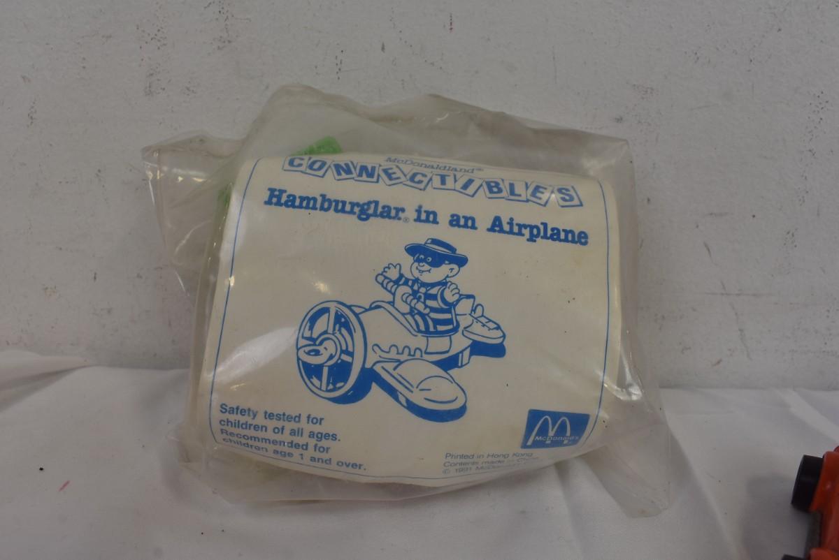 Vintage Toys: Thomas "Rosie" Train, Red Car, McDonalds Hamburglar 1991 Airplane