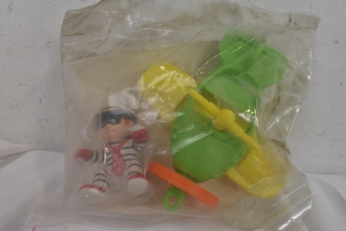 3 Vintage Toys: Thomas "Rosie" Train, Red Car, McDonalds Hamburglar 1991 Airplane Toy