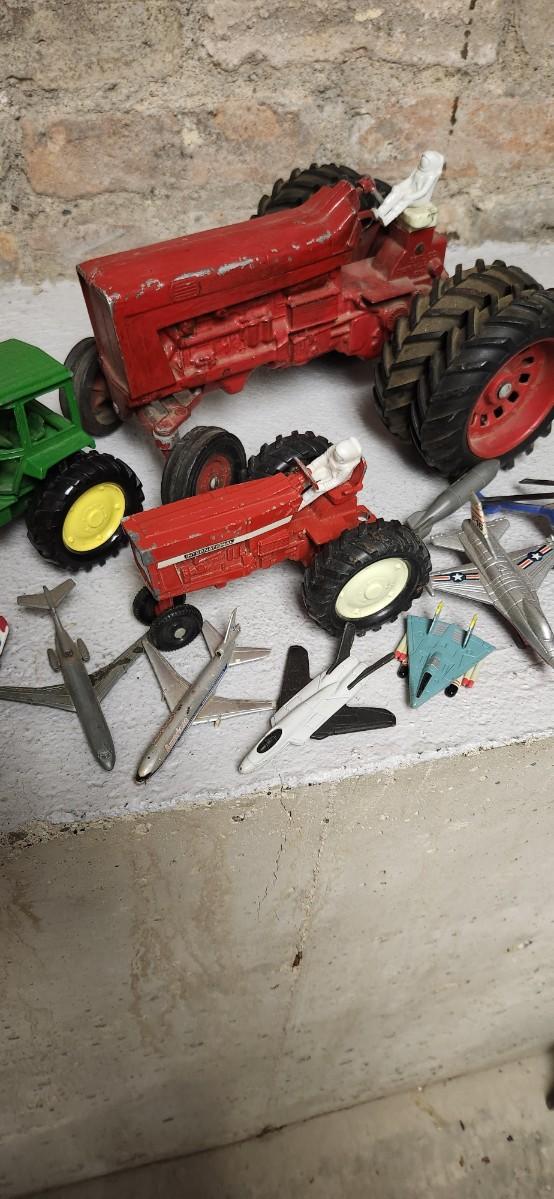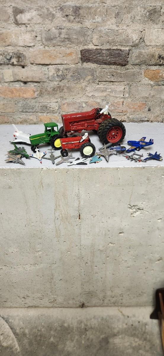 Lot of vintage toy tractors and planes