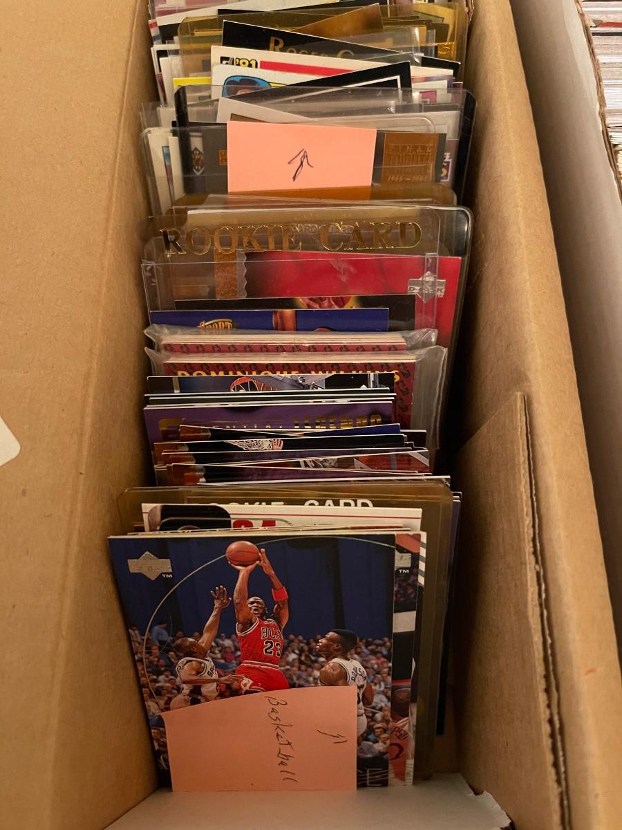 Huge boxes full of vintage sports trading cards - baseball, basketball, wrestling, gymnastics, some misc. Star Wars, football.