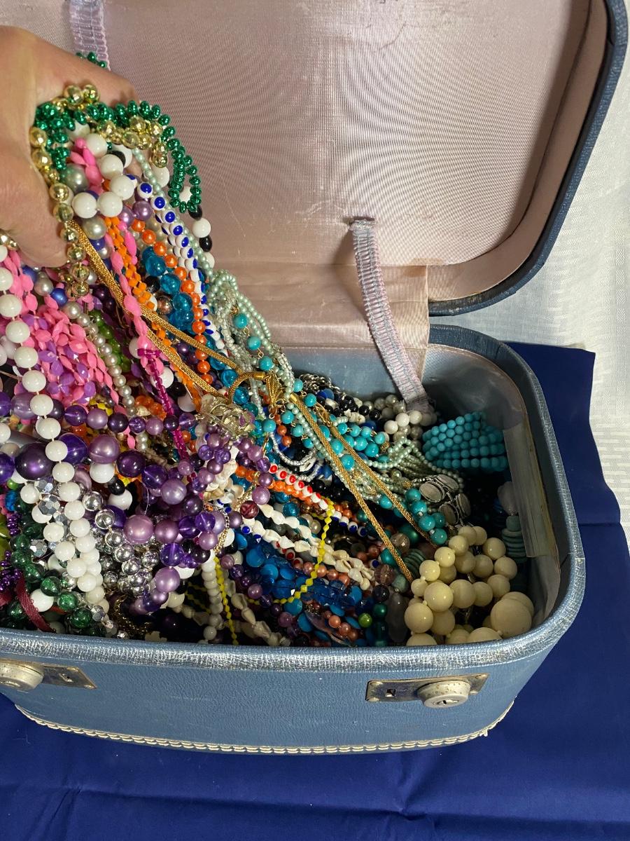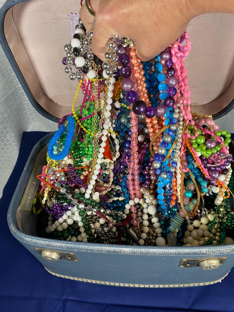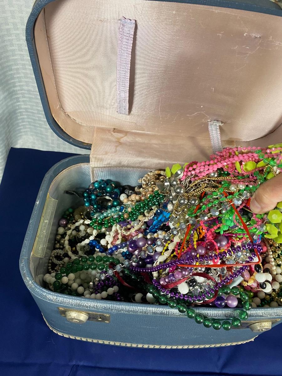 Vintage Train Case Full of Vintage Beaded Necklaces. Various styles and colors. Some broken, a lot are not just tangled. Total weight with case is over 21 lbs.