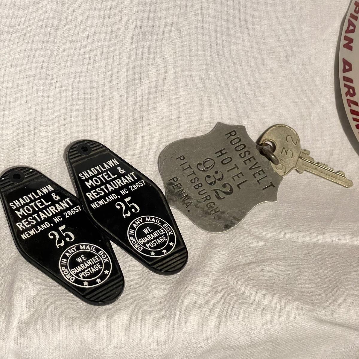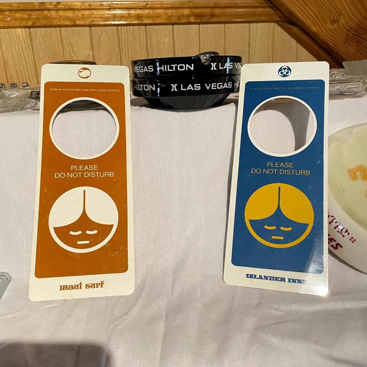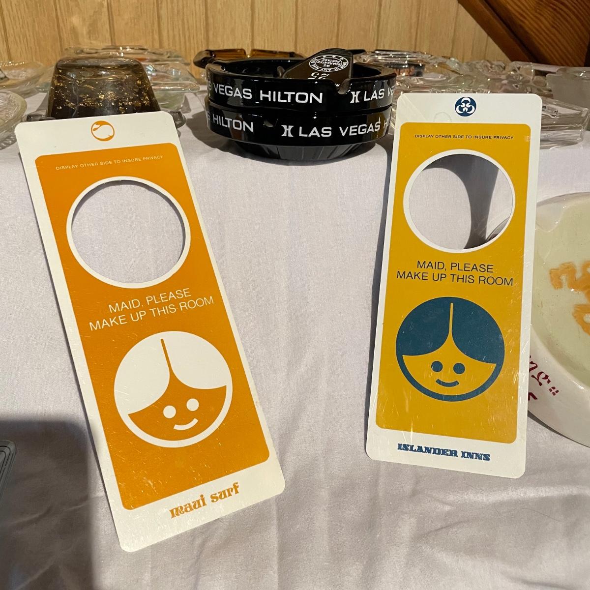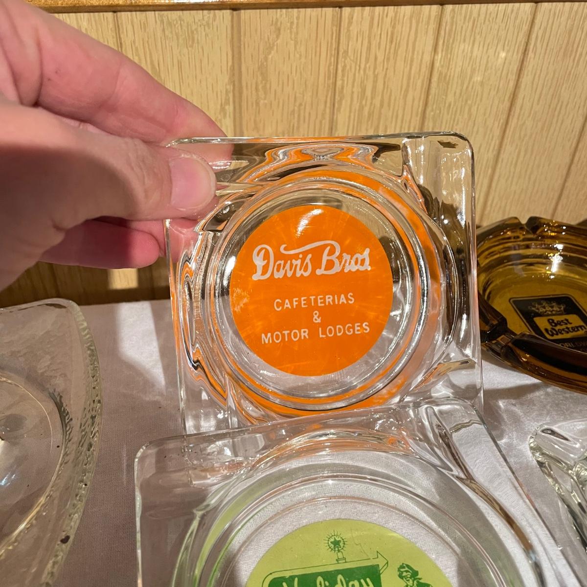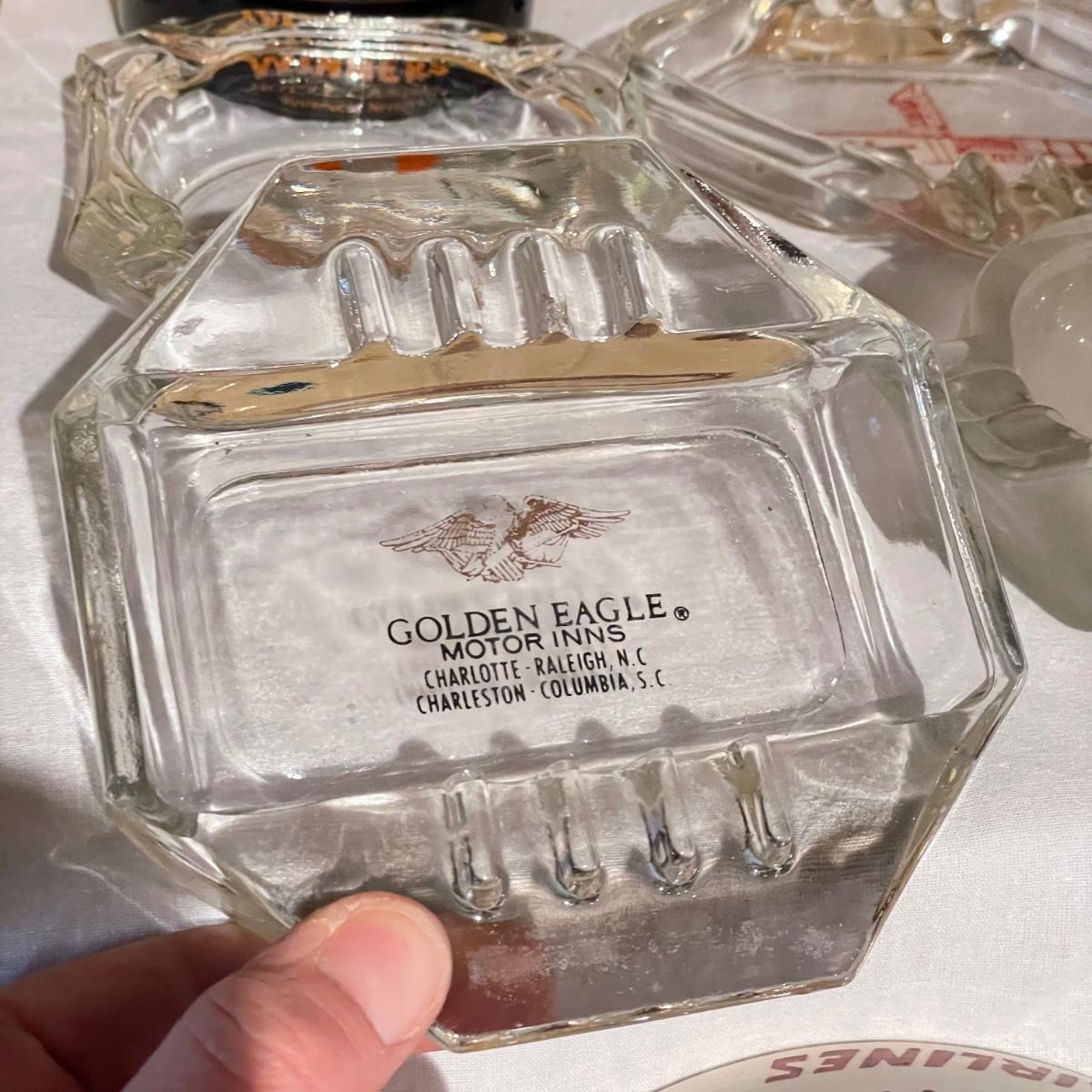 Over twenty vintage ashtrays advertising casinos, lodging and travel. Lot also holds two plastic hotel door hangers and old Roosevelt hotel metal key. The largest ashtray is handmade in Greece for Ethiopian Airlines, it’s almost 7”d. The Glass slipper is the smallest ashtray at 3.75”d. See images. Shipping available.