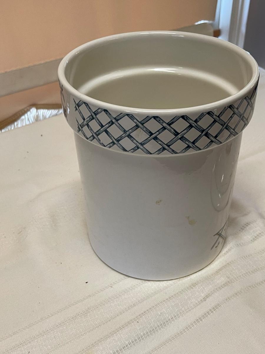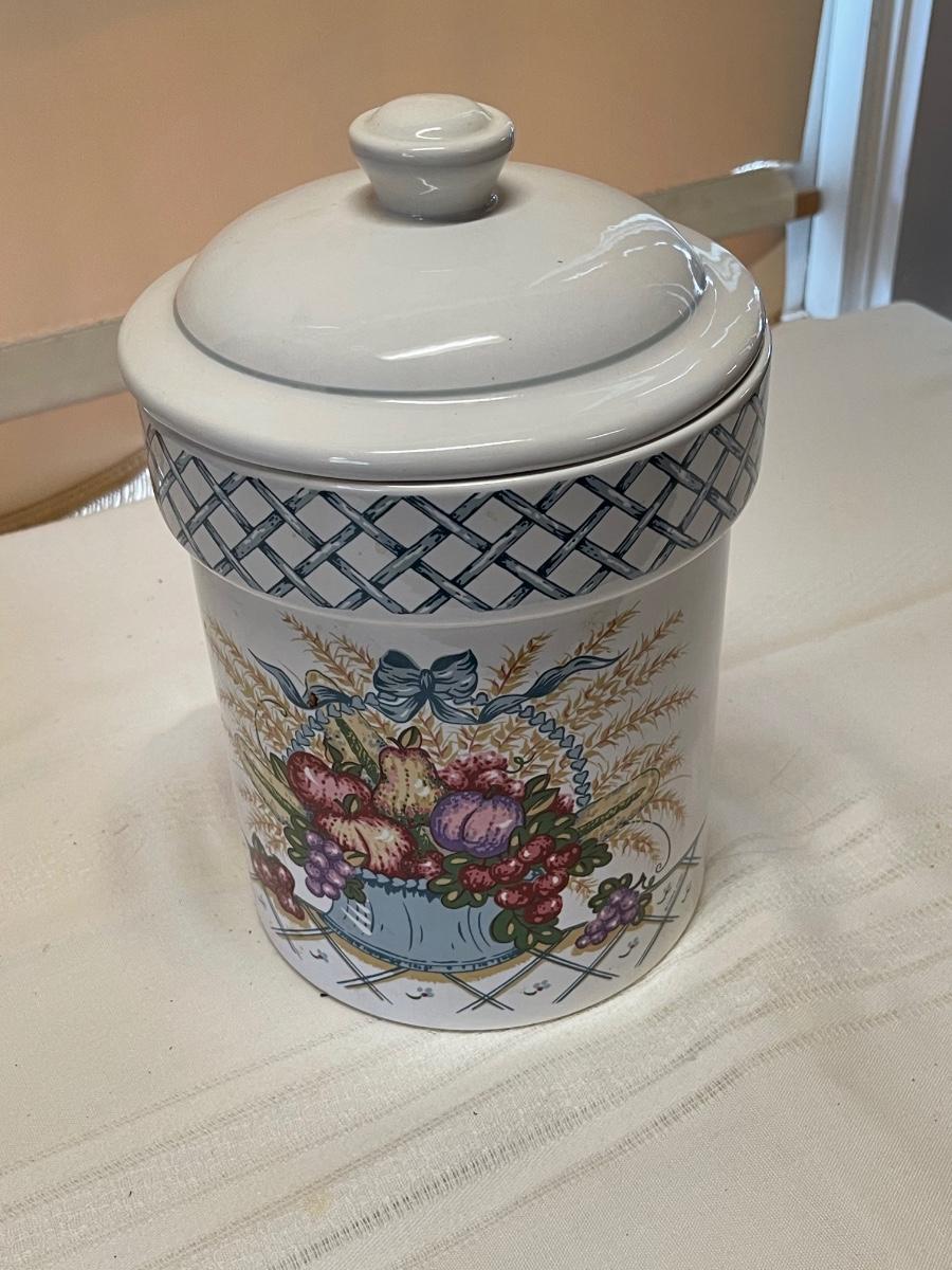 Vintage Treasure Craft Canister - Blue Lattice Basketweave Fruit