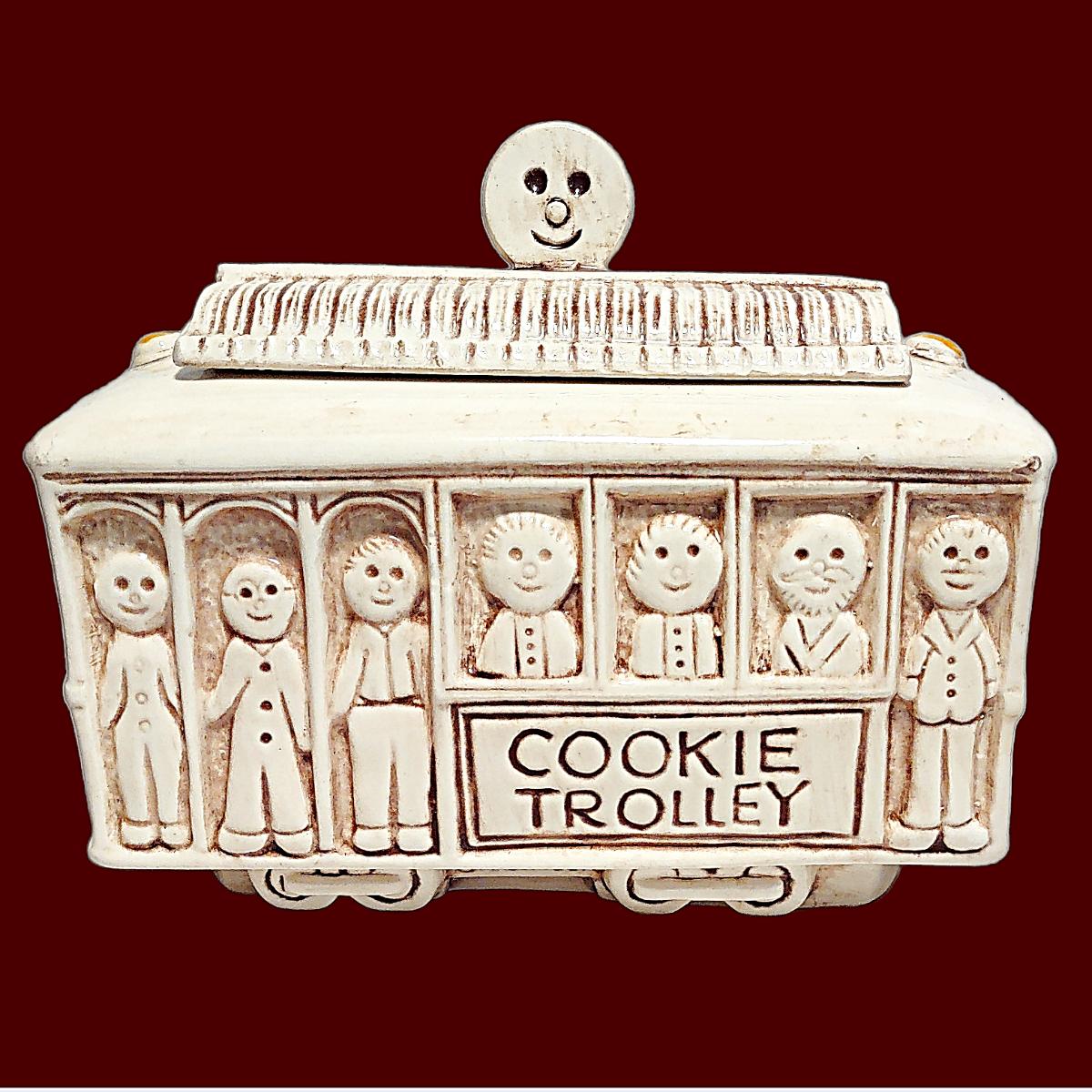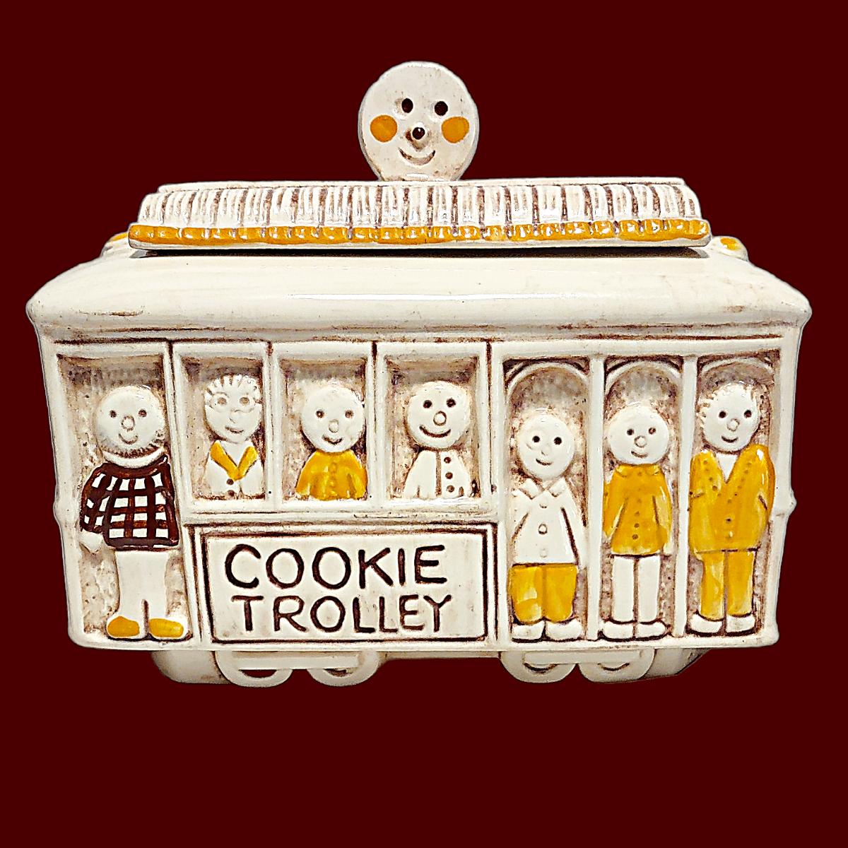 Vintage 1960's Treasure Craft Ceramic "Cookie Trolley" Cookie Jar