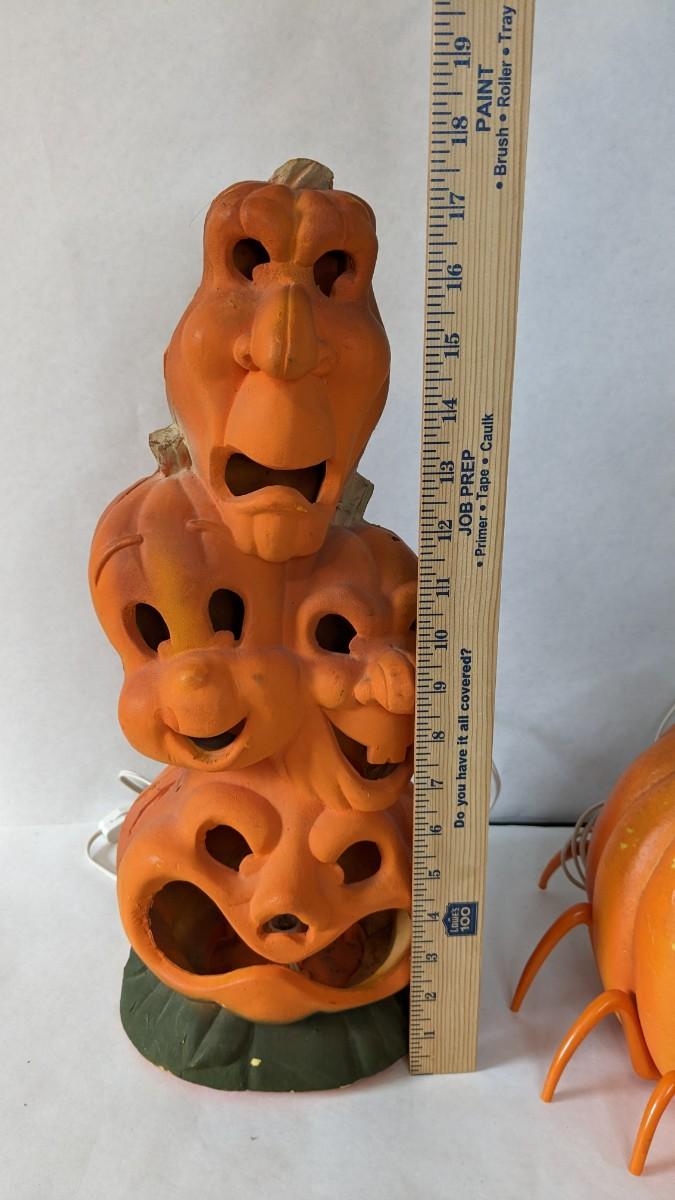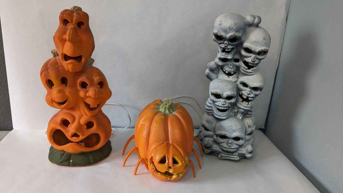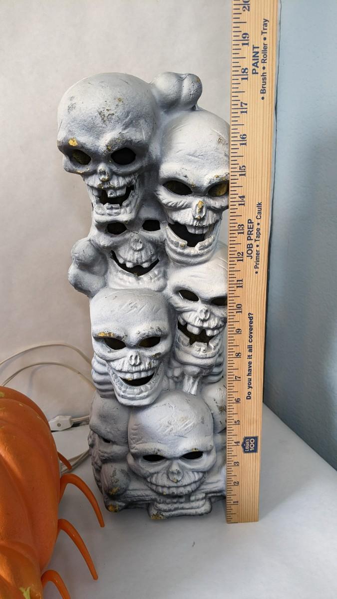 (3) varied size foam cutout Halloween lights from the 90's. Includes 2 Trendmaster brand and 1 Universal Casper piece that lights up. The other 2 need attention with spideypumpkin needing a new bulb and a presumed new fuse is needed for the skulls. Varied wear found in accordance with age, still some really great Halloween pieces!