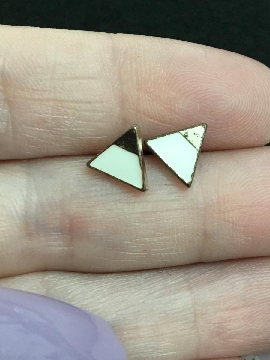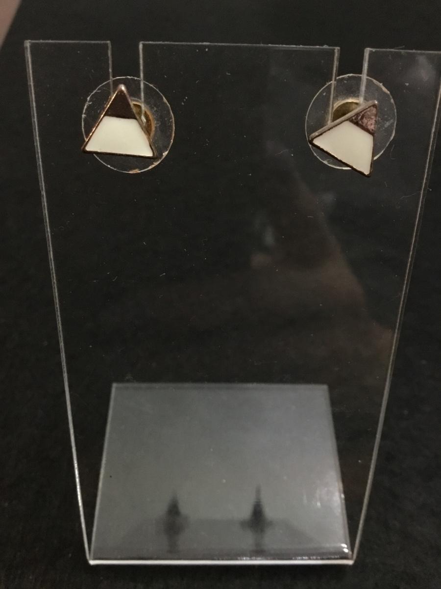Vintage triangle pyramid, gold tone, enamel stud earrings