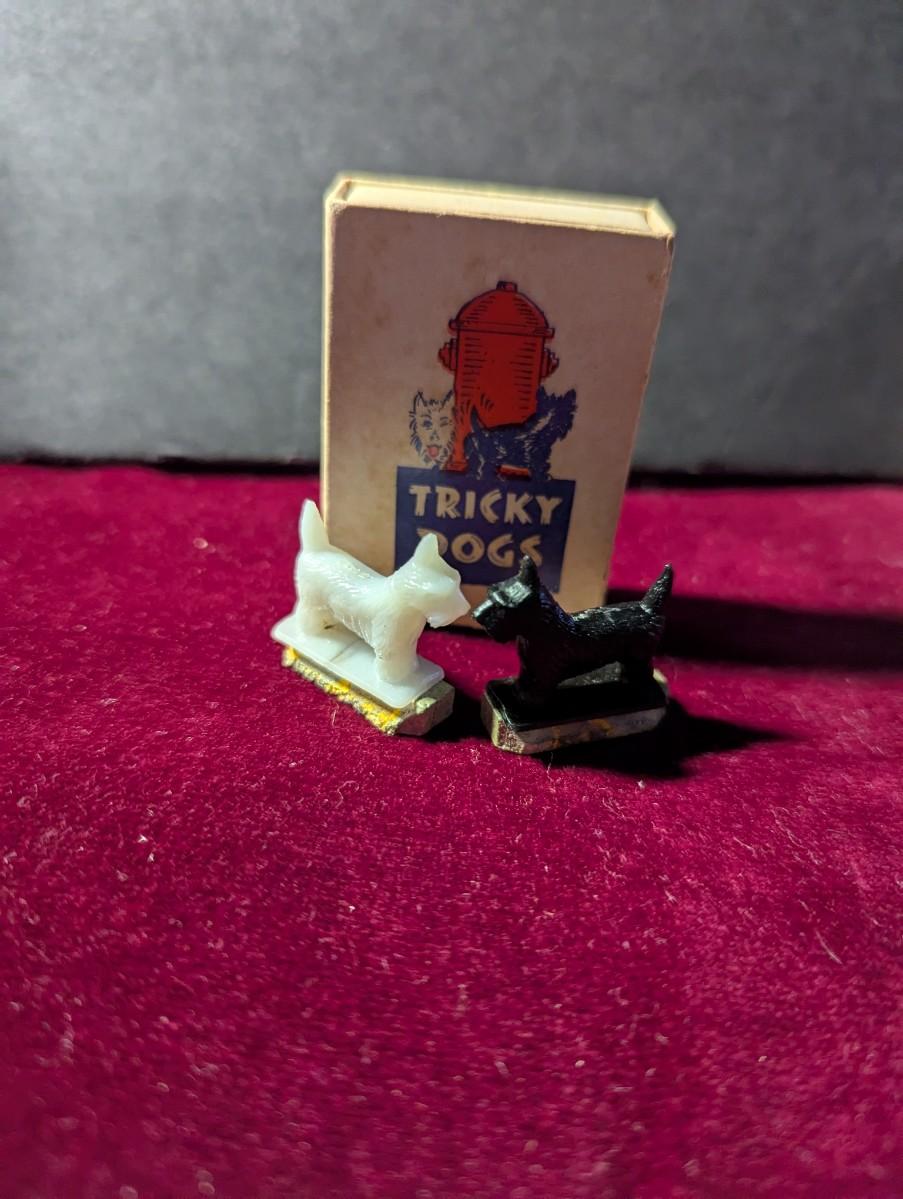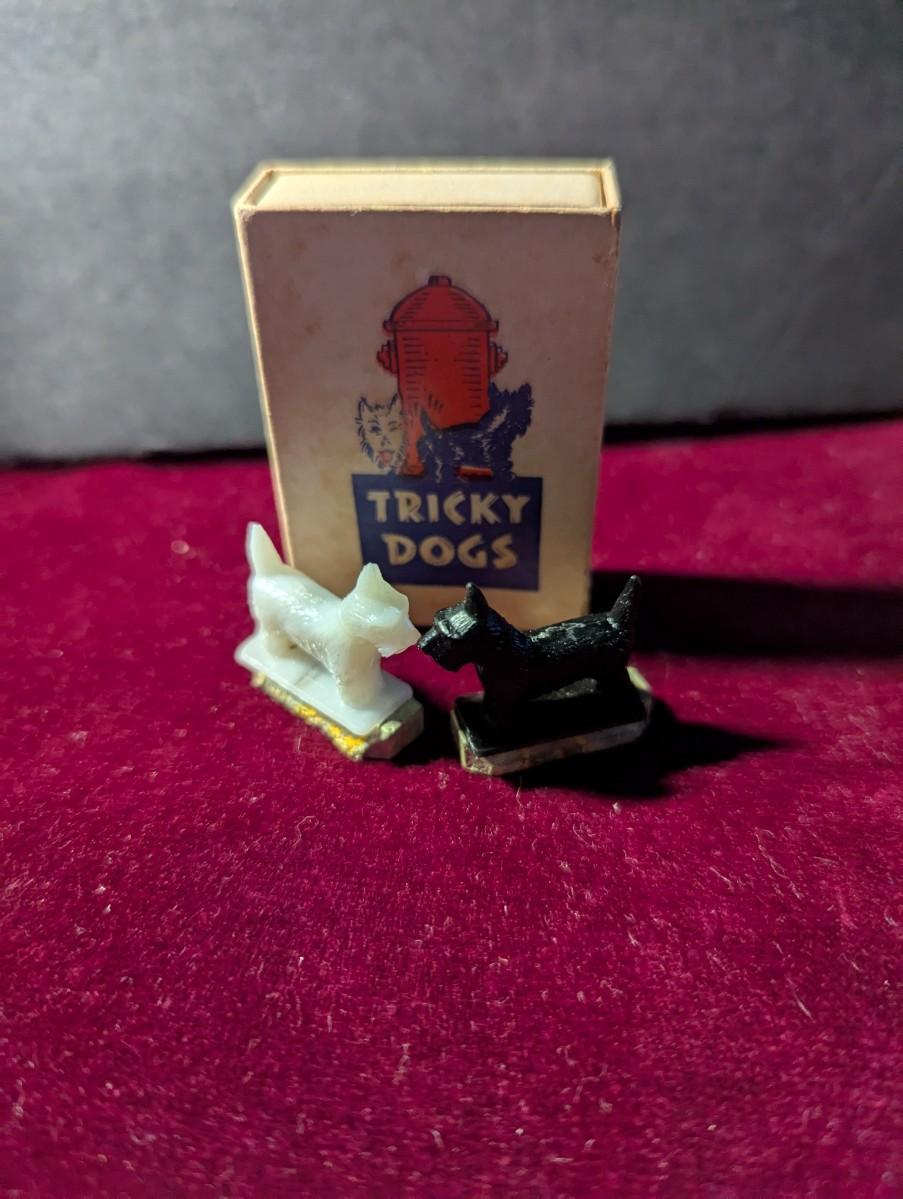 Vintage Tricky Dogs Novelty Black / White Magnetic Dogs w/ Box