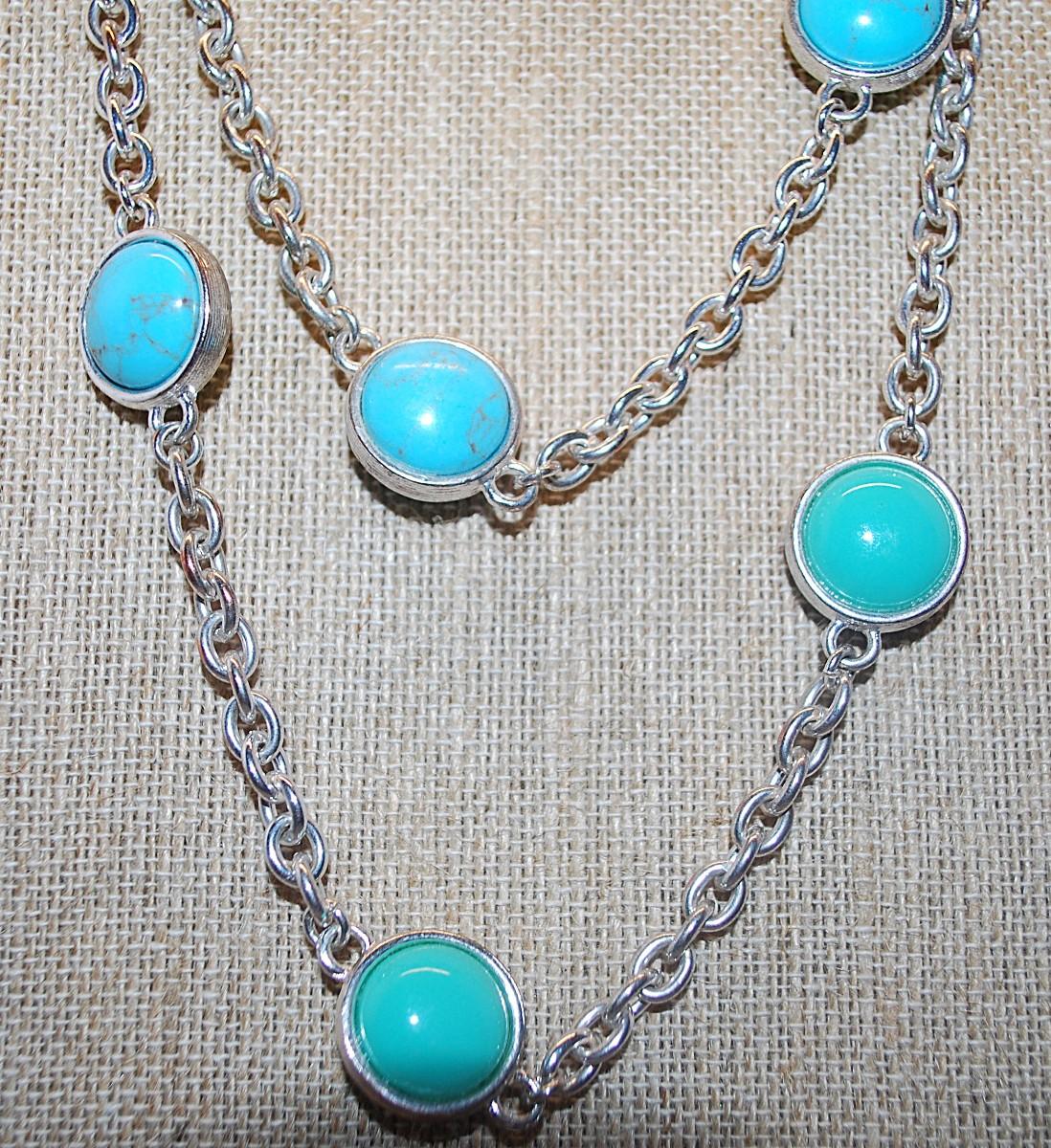 Vintage "TRIFARI" BRAND Faux Turquoise Silver Tone Necklace on a Silver Tone Chain 32" L