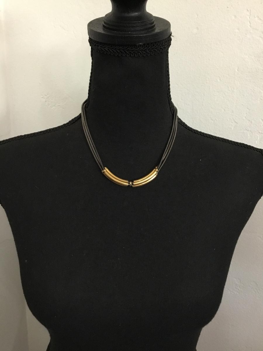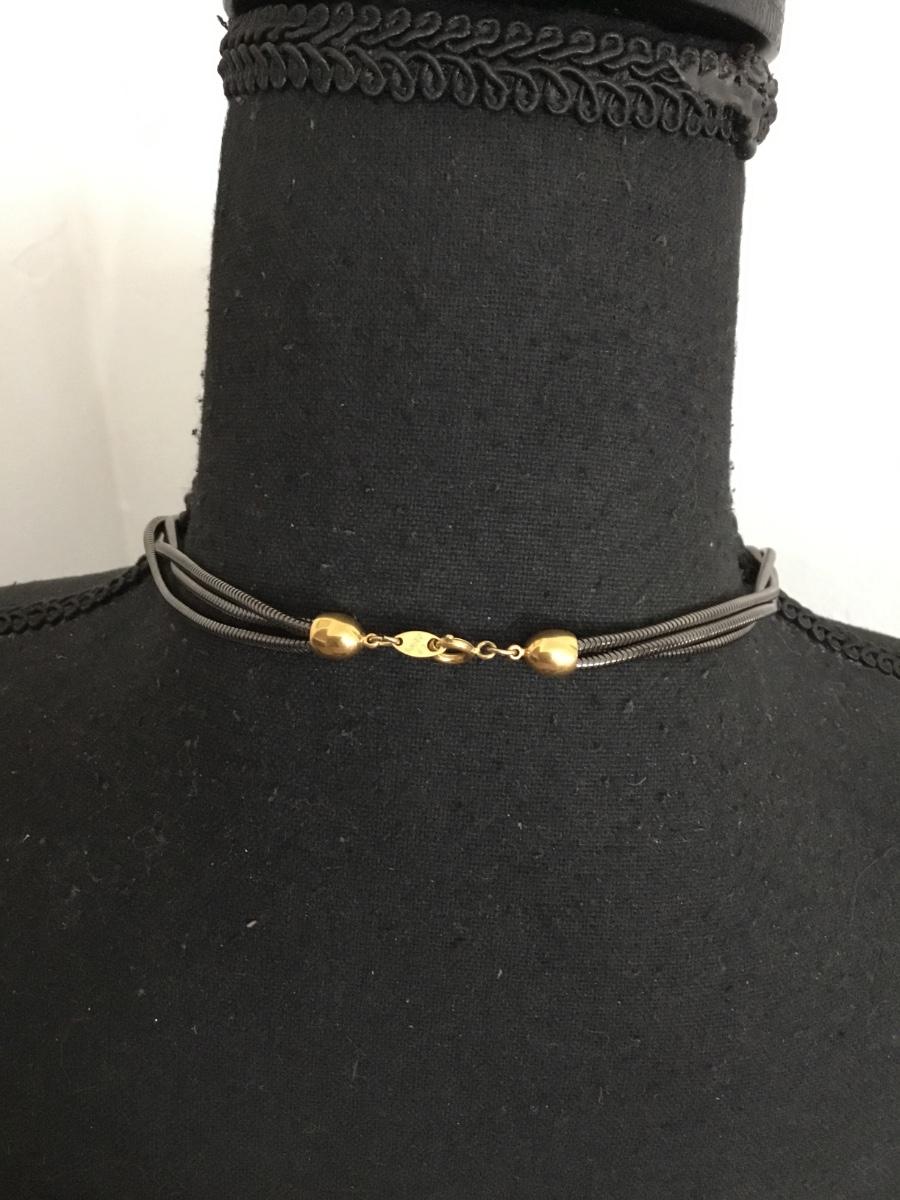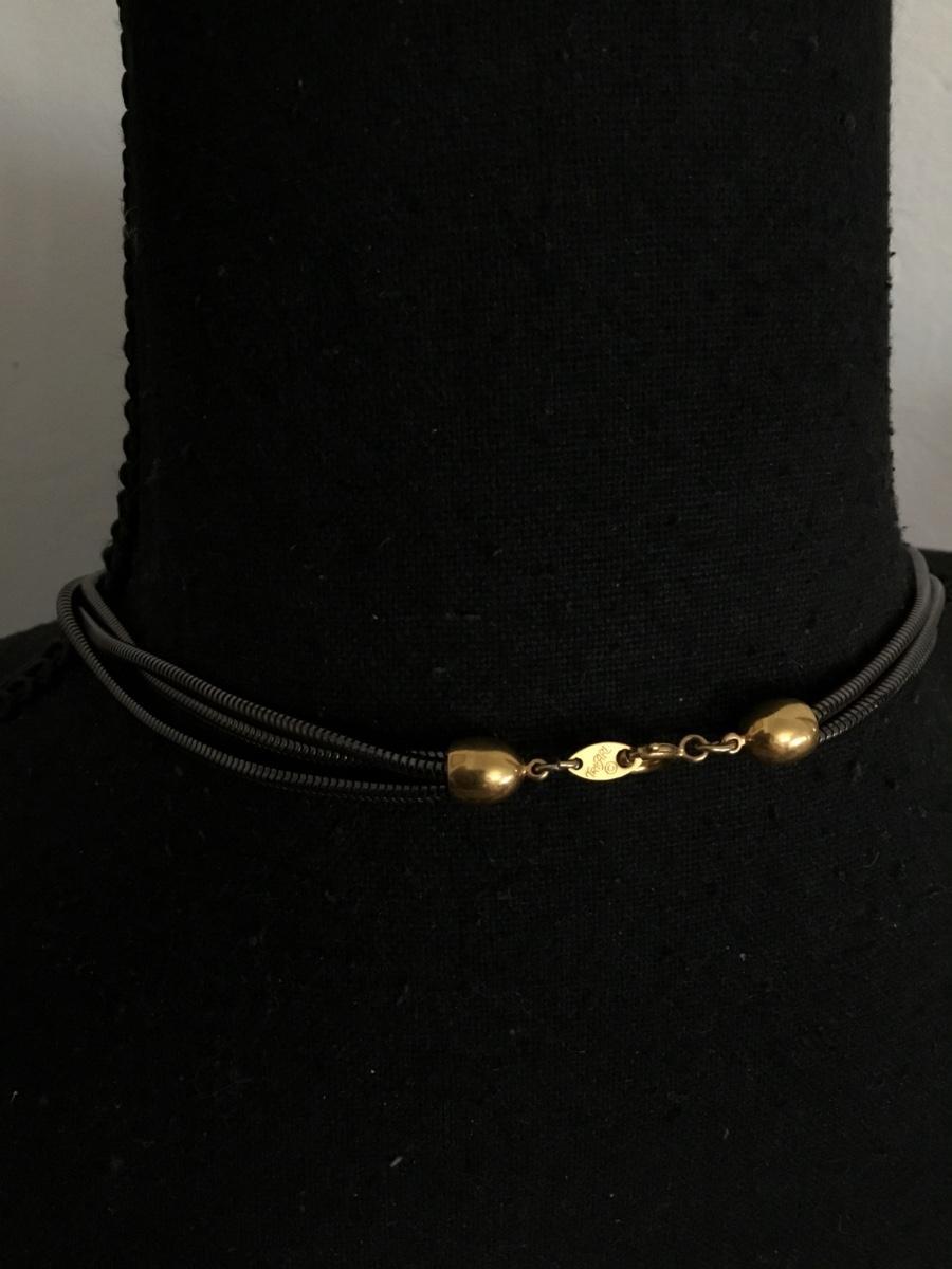 Vintage Trifari, gold tone, gun metal, gray necklace