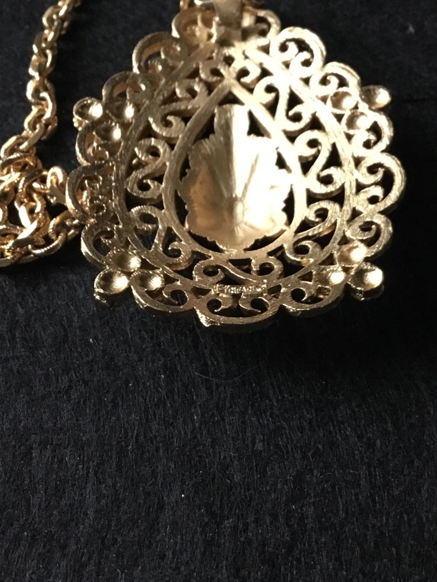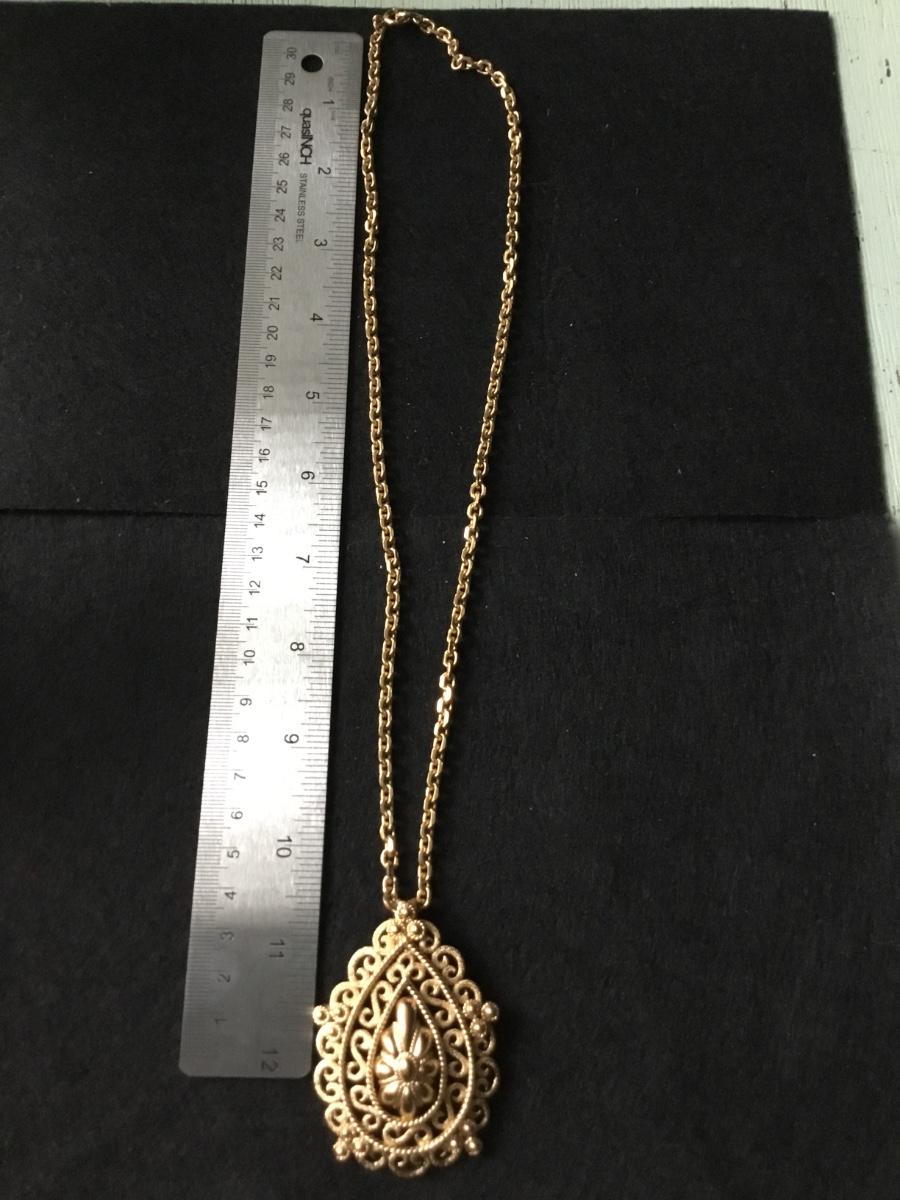 Vintage Trifari necklace filigree design teardrop shaped pendant