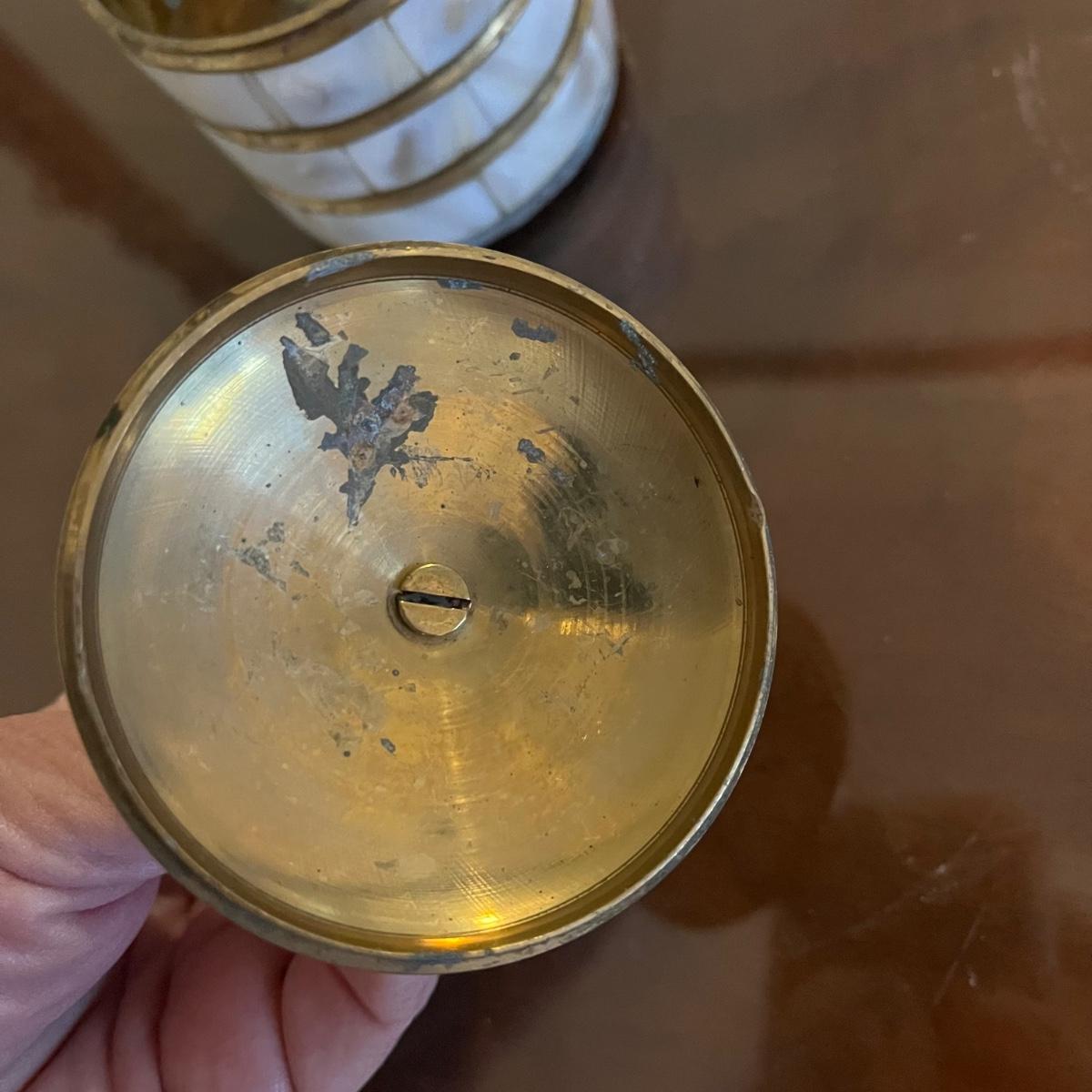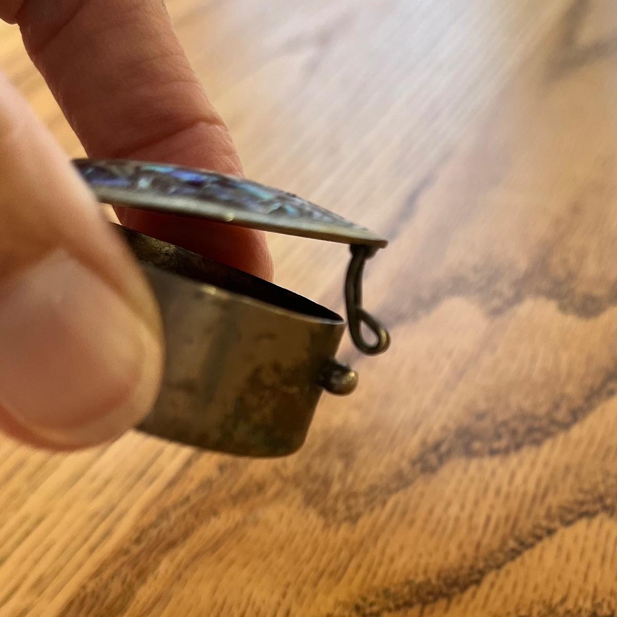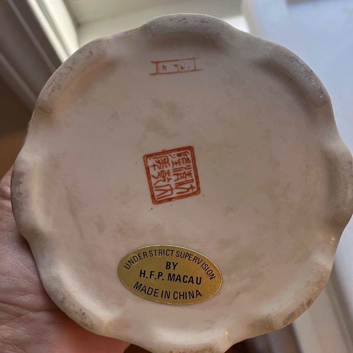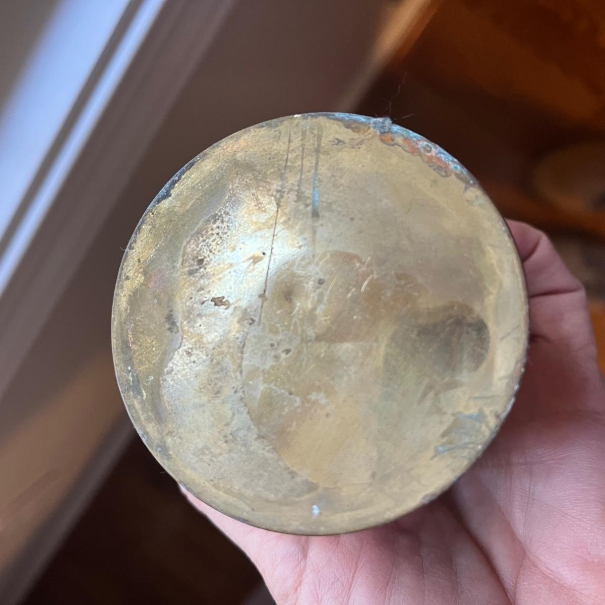 Four lovely trinket boxes in various sizes are included. The largest is a Chinese porcelain trinket box measuring 4.75”D x 2.75”H. Note that there is an hairline crack in the lid on this one. Also a brass and mother of pearl keepsake box, and two smaller trinket boxes with decorative inlaid lids.