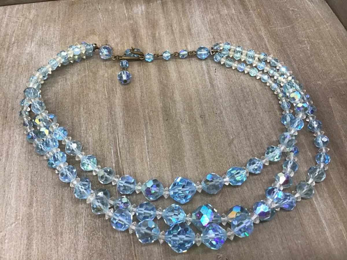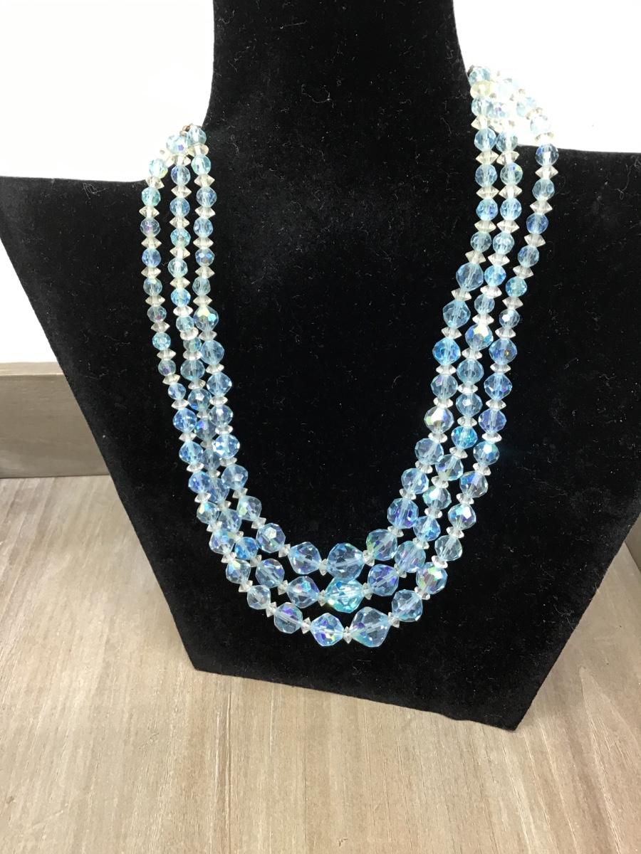 Vintage Triple Strand AUSTRIAN Crystal AURORA BOREALIS Necklace