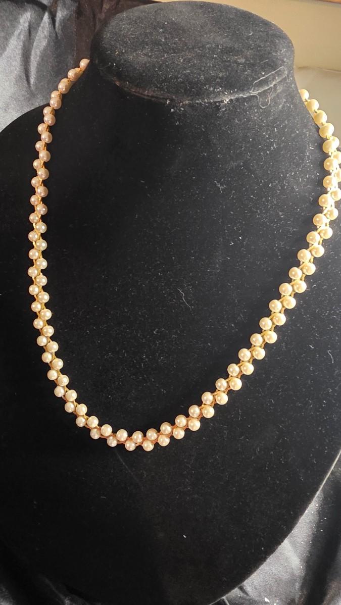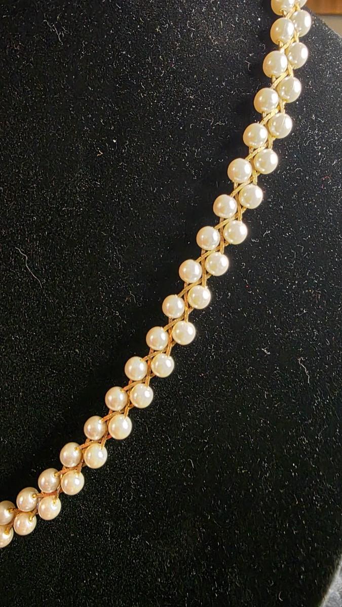 Imagine it paired with a little black dress for evenings that shimmer with possibility, or layered against cashmere where it becomes the heartbeat of winter elegance, its glow softening every gesture into something unforgettable. From the tradition of mid-century costume pearl artistry, its strands remain secure and its clasp strong, a piece that brings the romance of vintage sophistication to any moment.