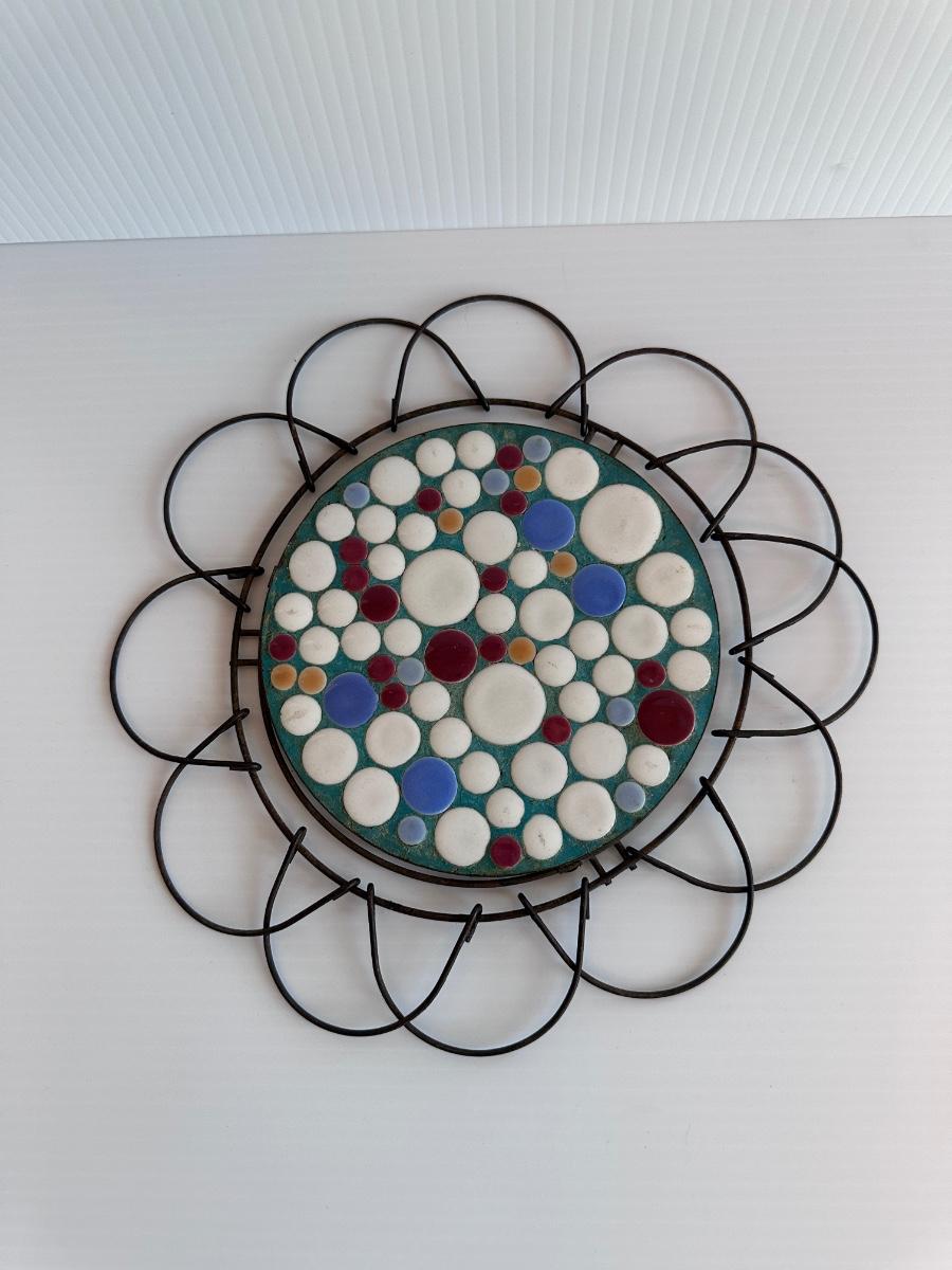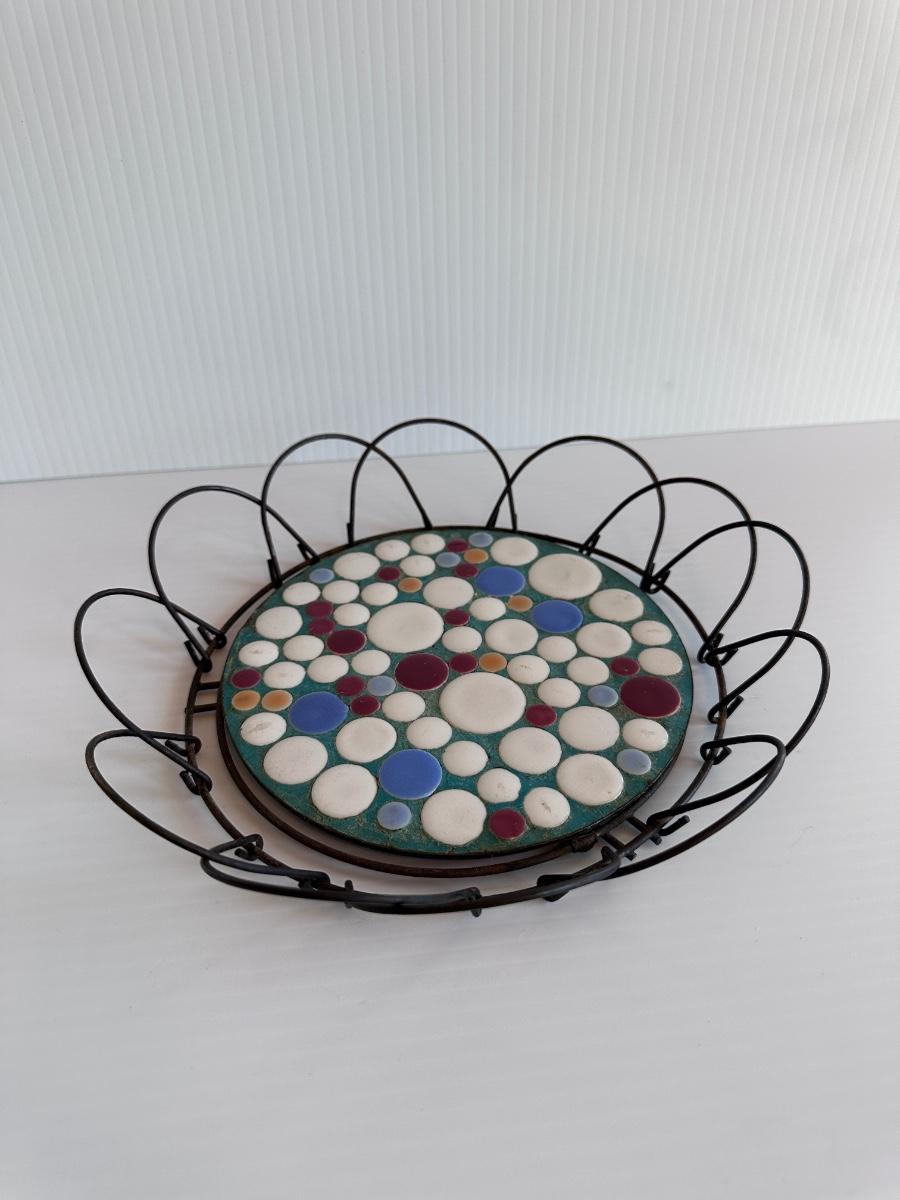 VINTAGE  MCM TILE  TRIVET w/COLLAPSIBLE WIRE FRAME