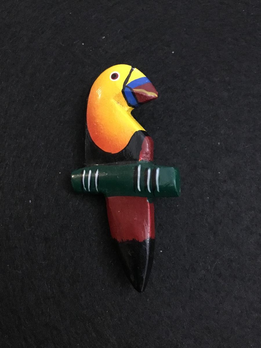 Vintage, tropical wooden bird pin / brooch