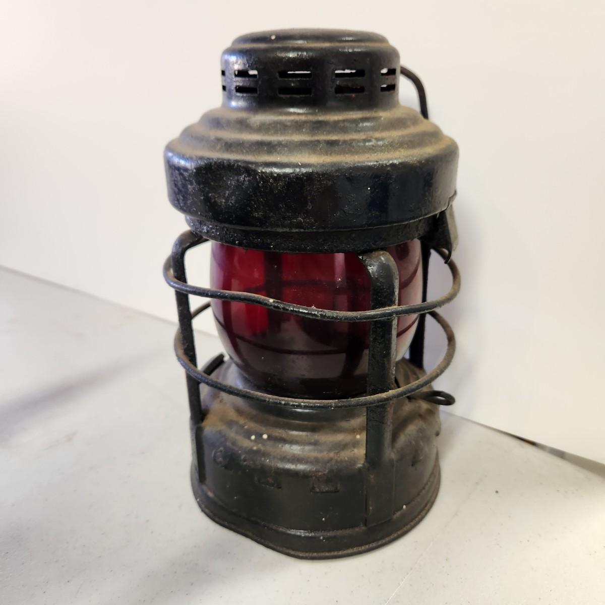 Vintage Truck Wagon Oil Lantern w Red Globe 8.5" tall