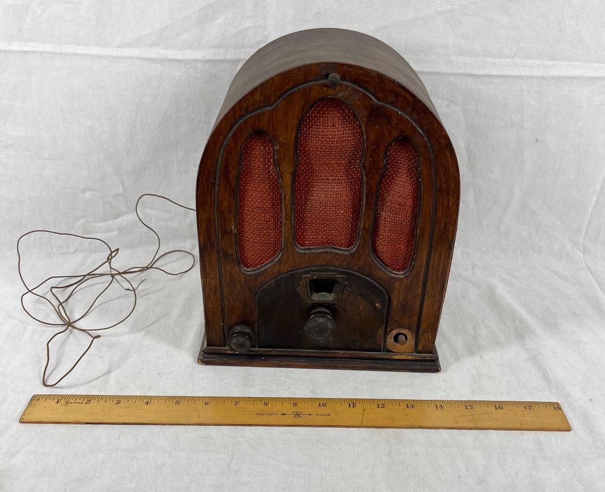 Vintage table top tube radio. Untested. Great for display. About 9” wide.