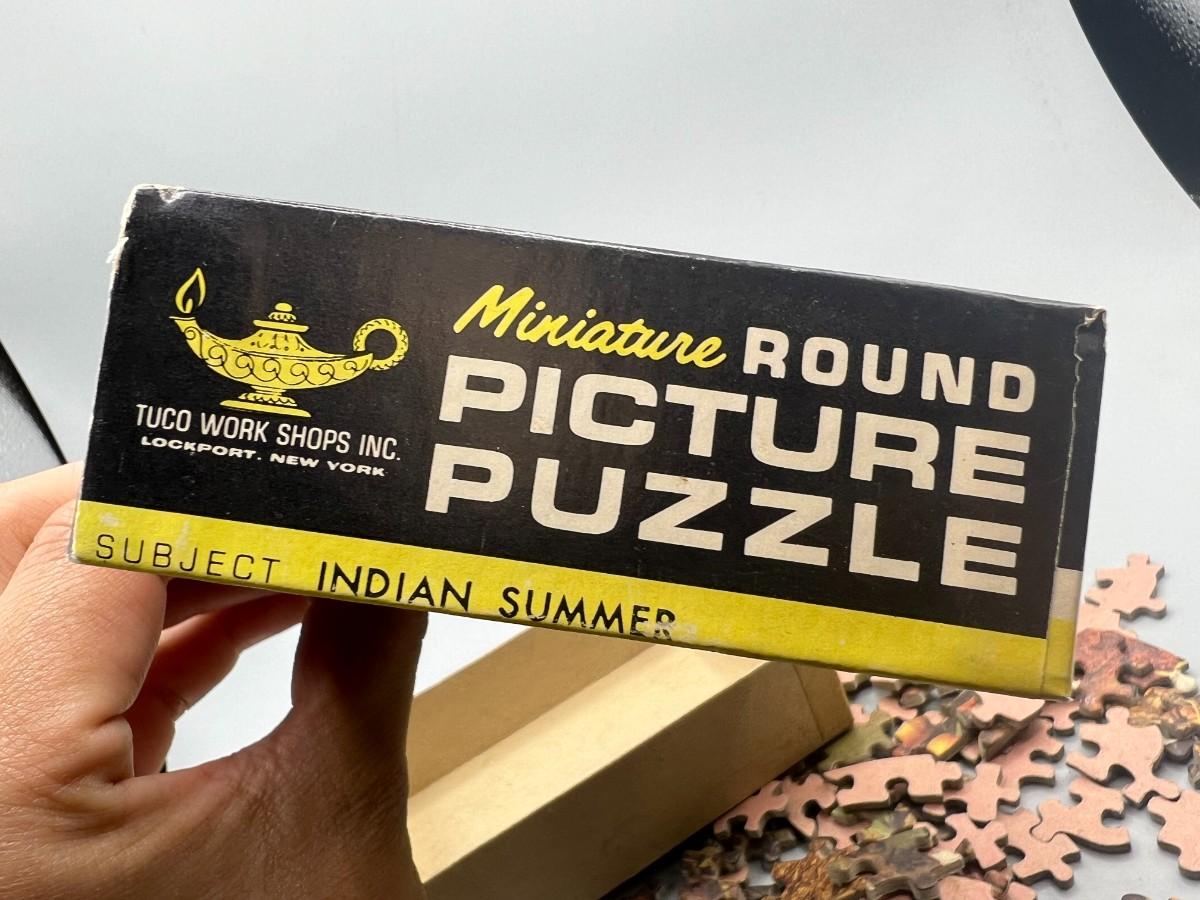 Vintage TUCO Round Miniature Puzzle Autumn Leaves Forest Landscape Indian Summer