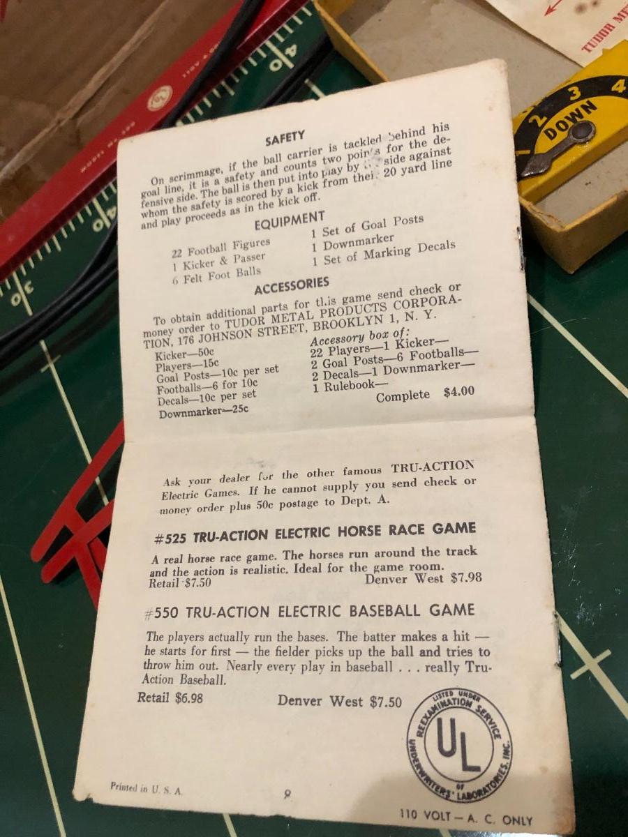 Vintage Tudor Tru-Action Metal Electronic ˆ Football Game - untested