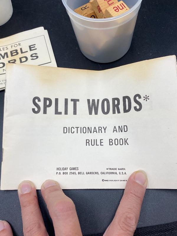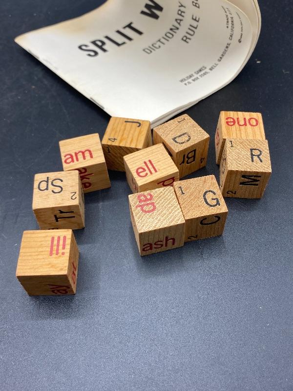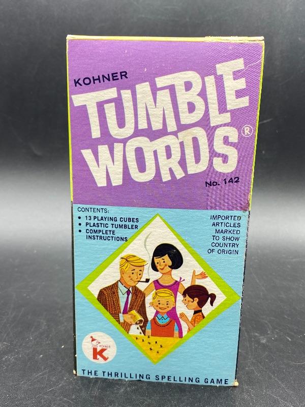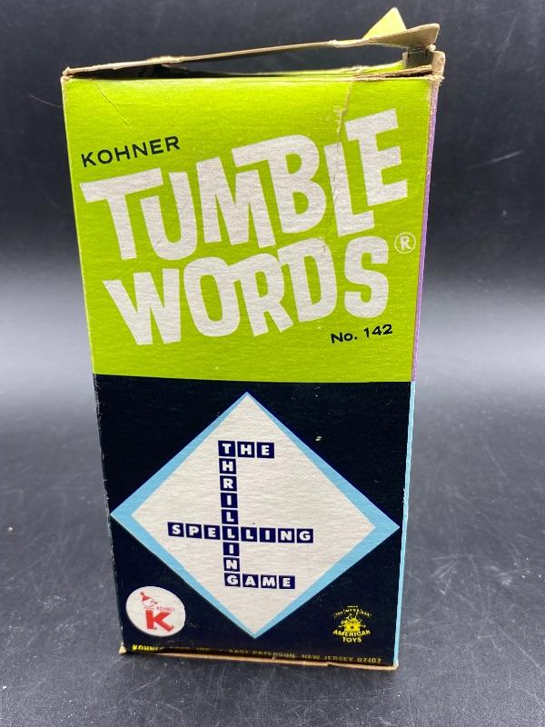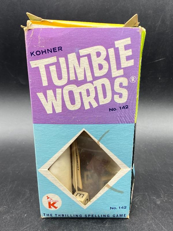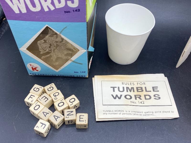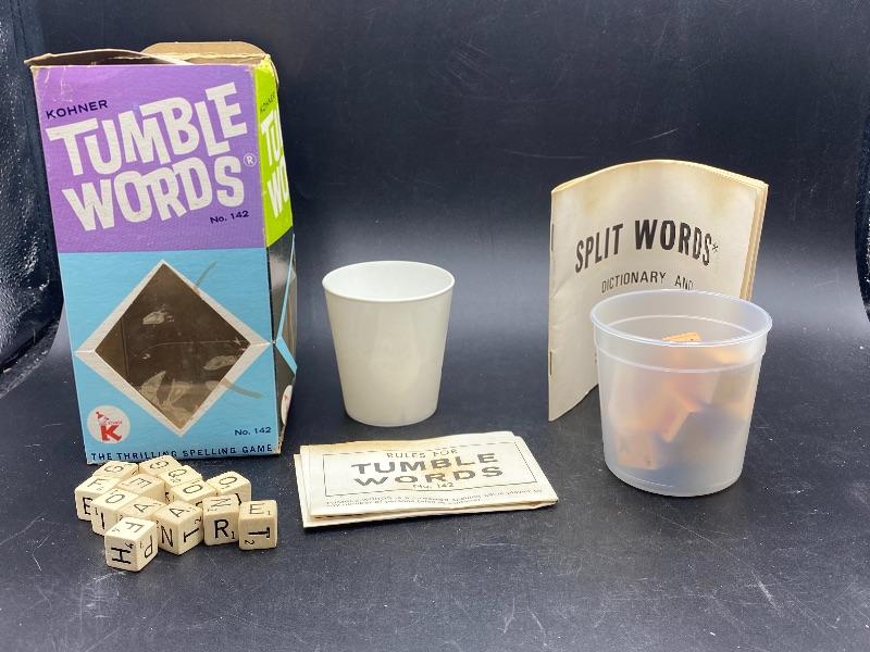Vintage Tumble Words & Split Words vocabulary dice games. Both are in the Tumble words box and are complete. Box is falling apart from age.
