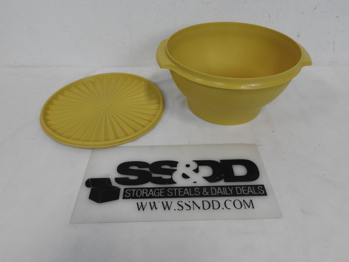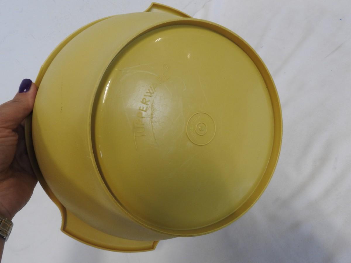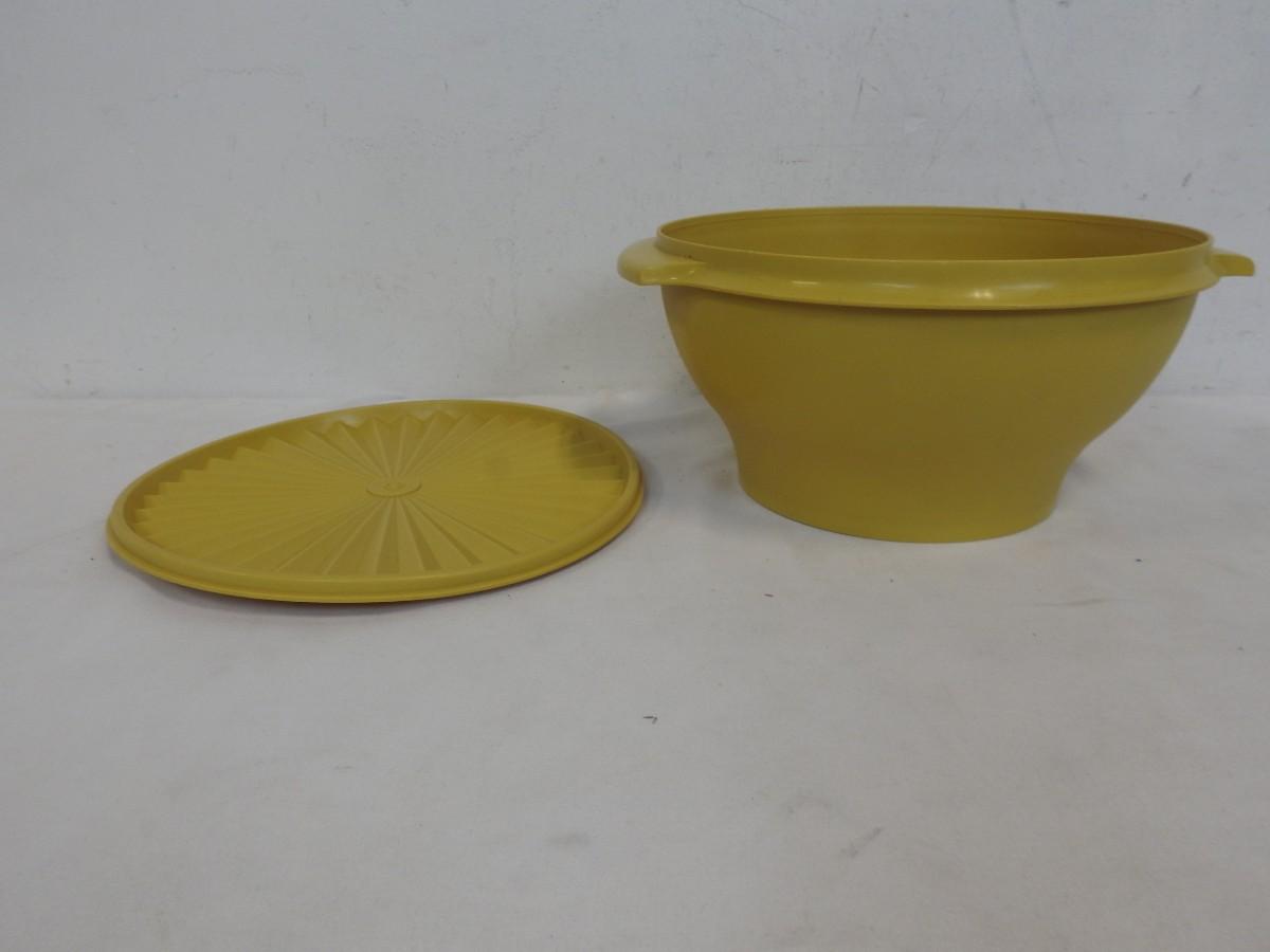 Vintage Tupperware 10" Salad Bowl with Lid, Harvest Gold #880-6. Melting Damage