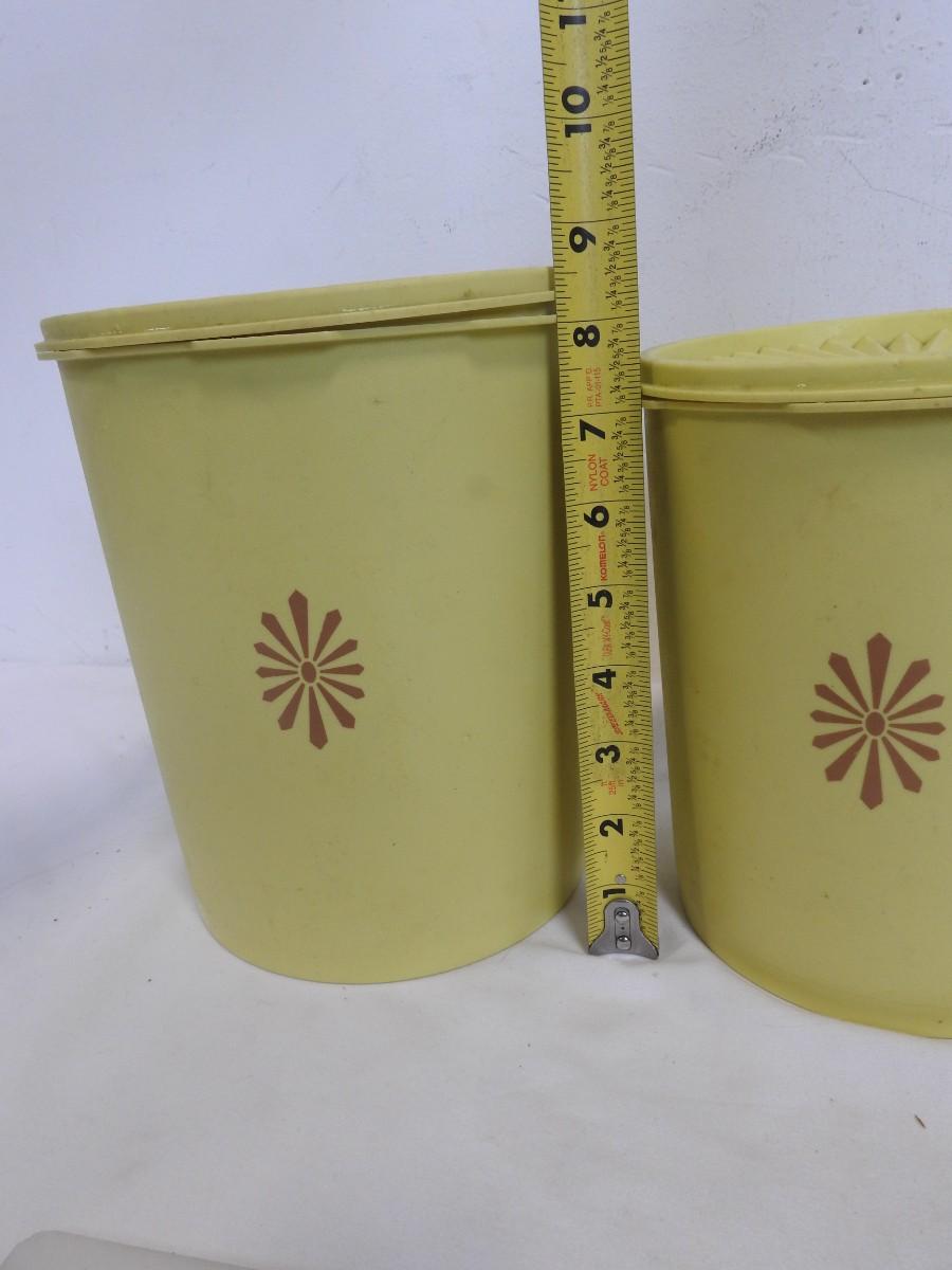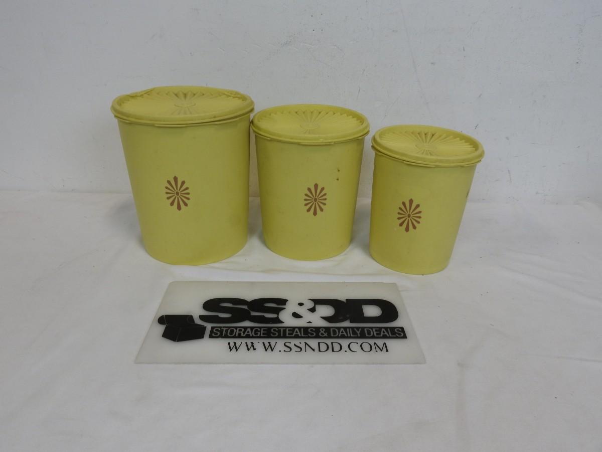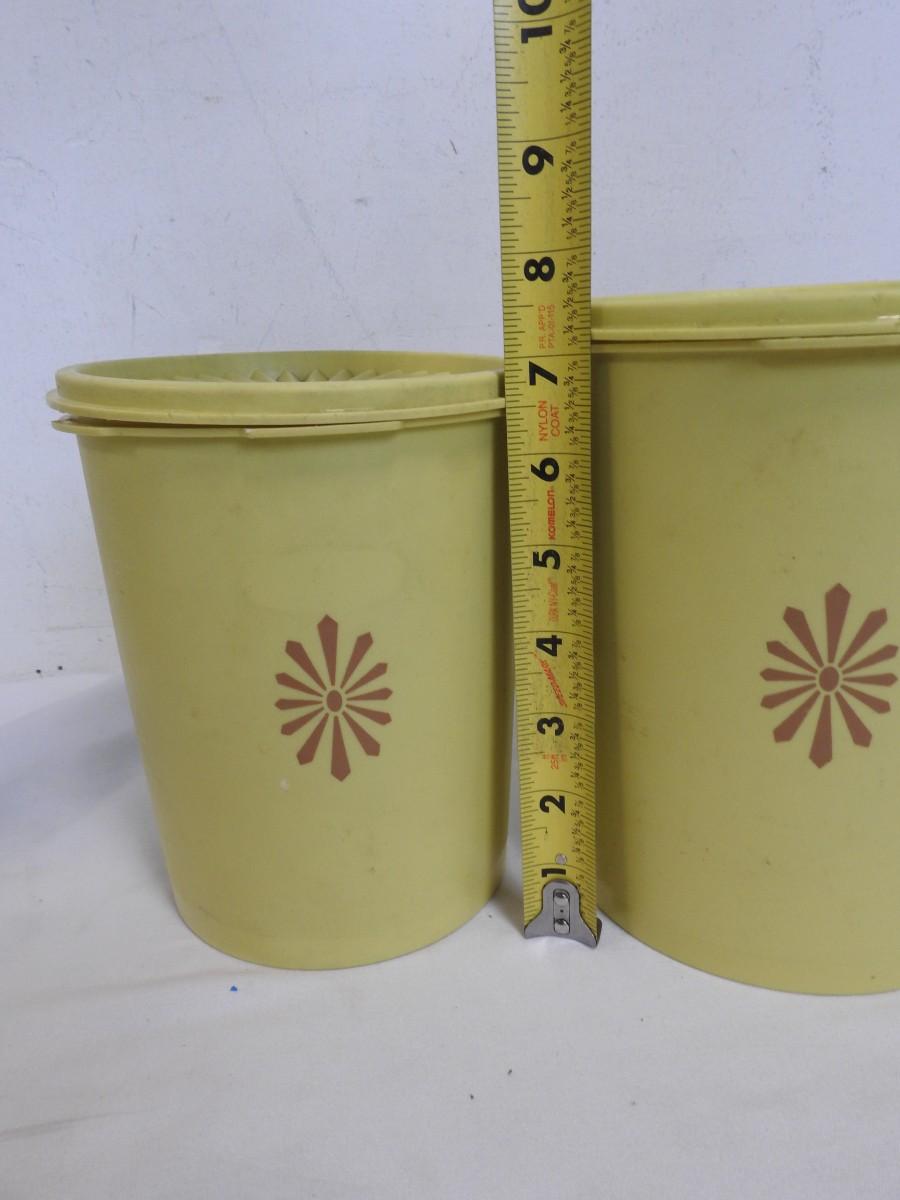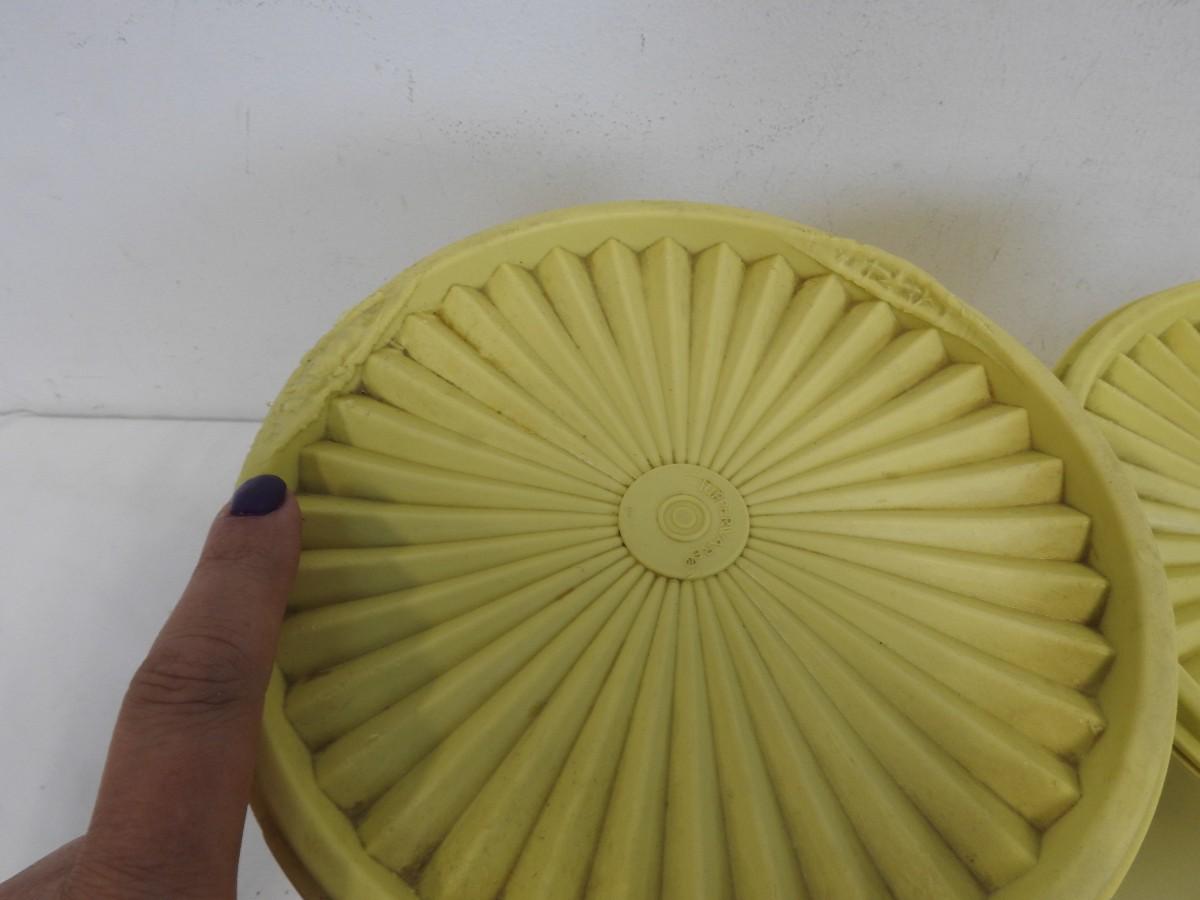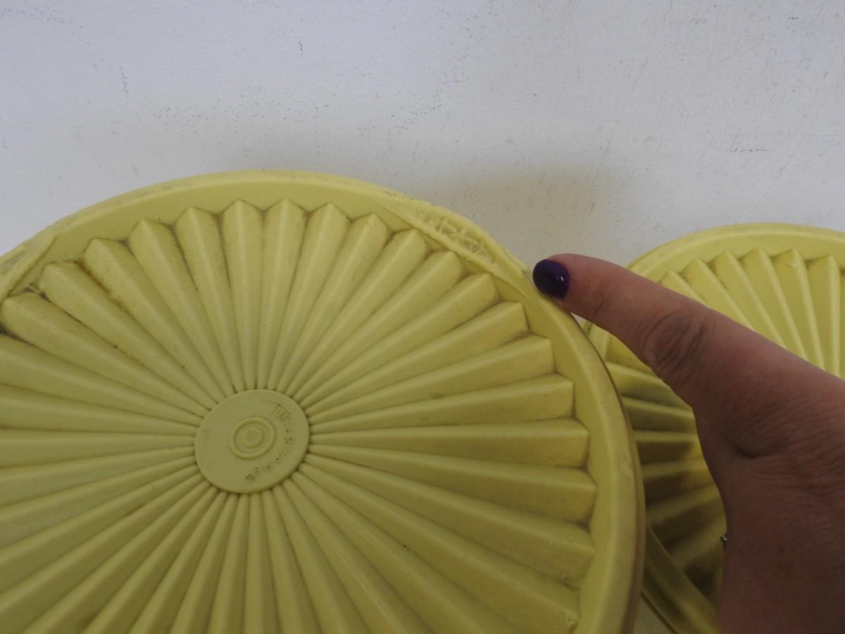 Vintage Tupperware 3 Nesting Containers with Lids, Yellow Gold, Melting Damage as Shown. 805-2, 807-3, & 809-5