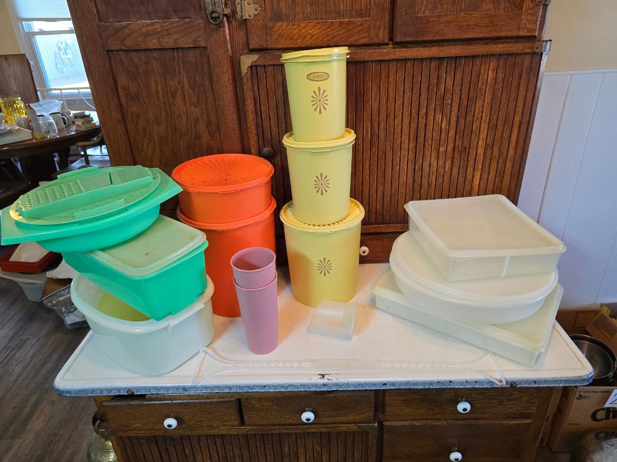 Vintage Tupperware brand containers- canisters - shredder with bowl - cake storage - and more