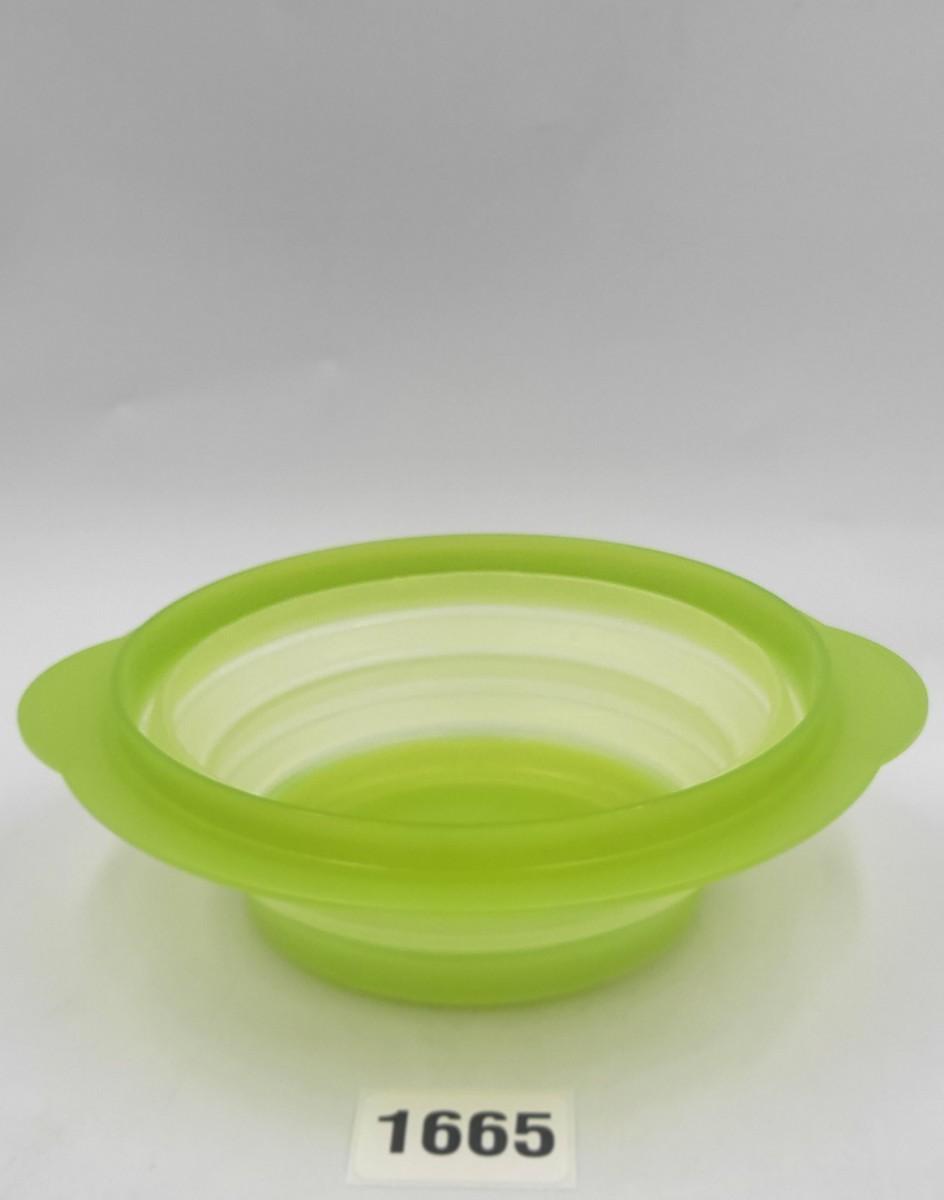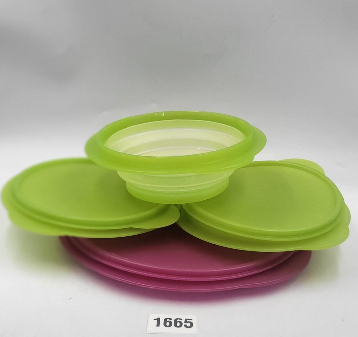 4 collapsible bowls. Only 2 of the 3 green bowls have lids.