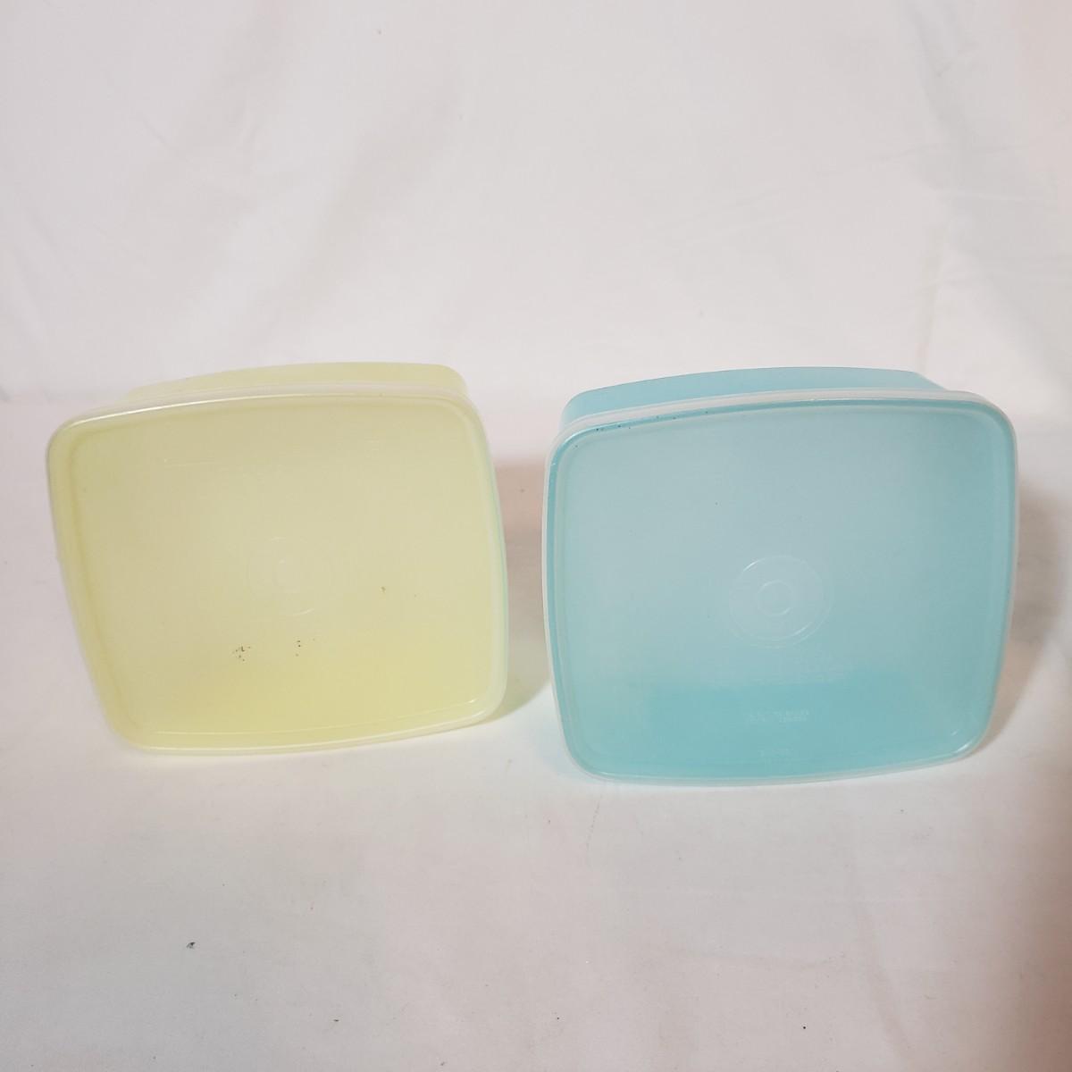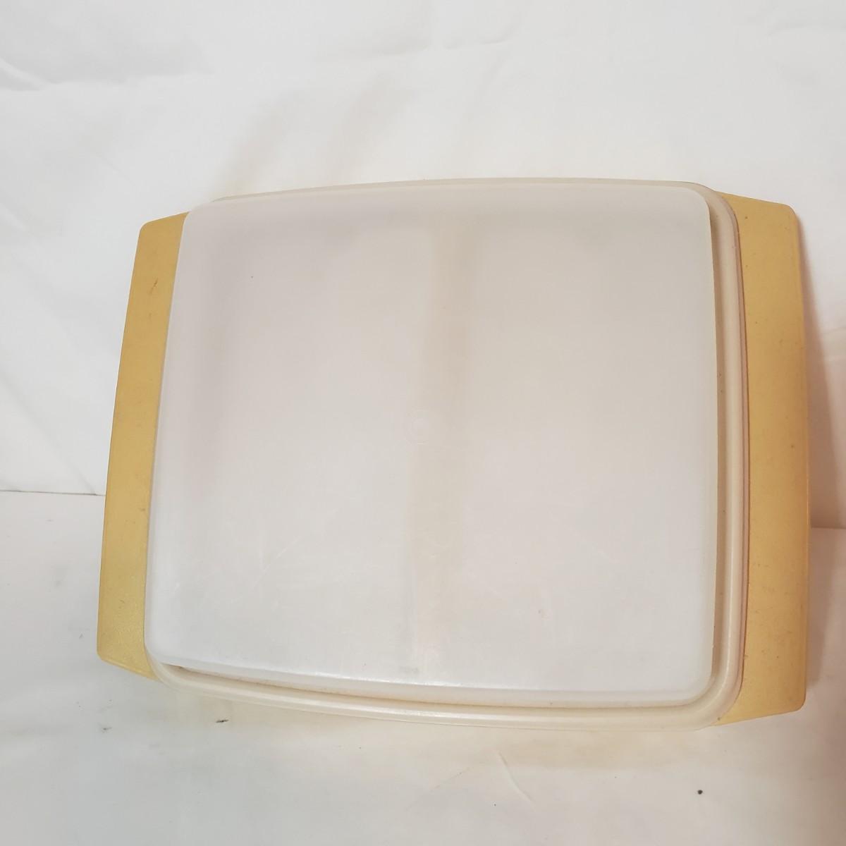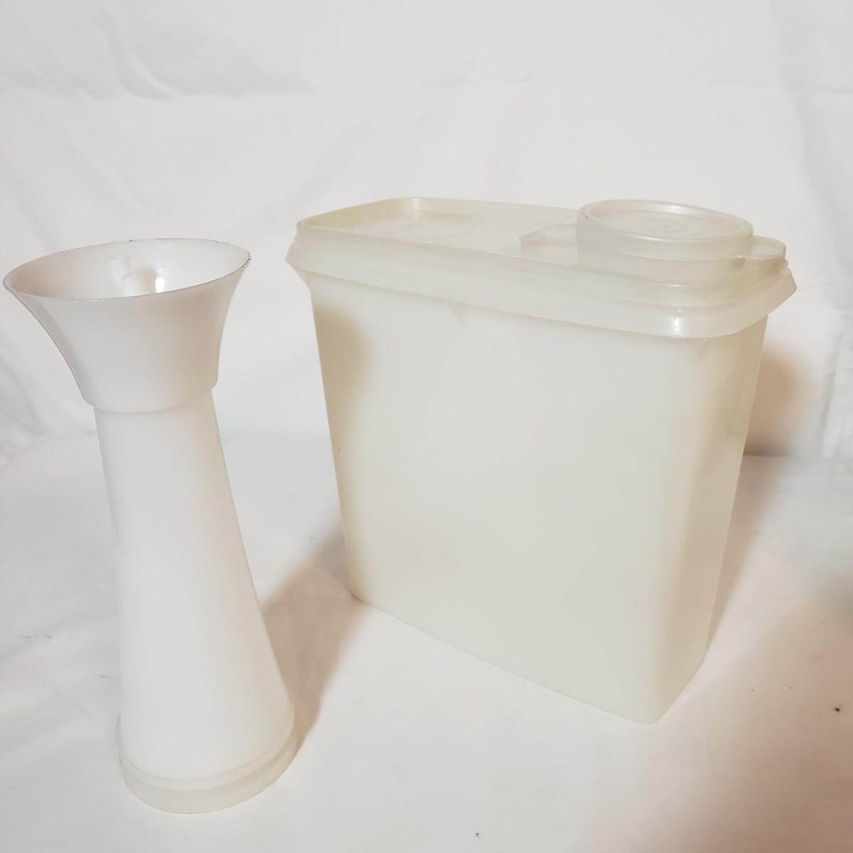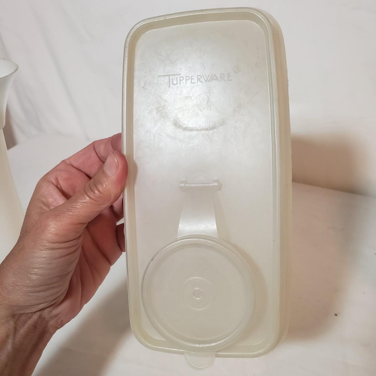 Vintage Tupperware, just like your Mom had! The gems are the green four piece spice racks! There are eight in total. They can hang inside a cabinet! One has the middle hole for hanging broke, but the two ends will work! The deviled egg holder measures 9" x 11" x 3"H. The powder sugar dispenser has a grinding handle for perfect power dusting. See pictures for details.