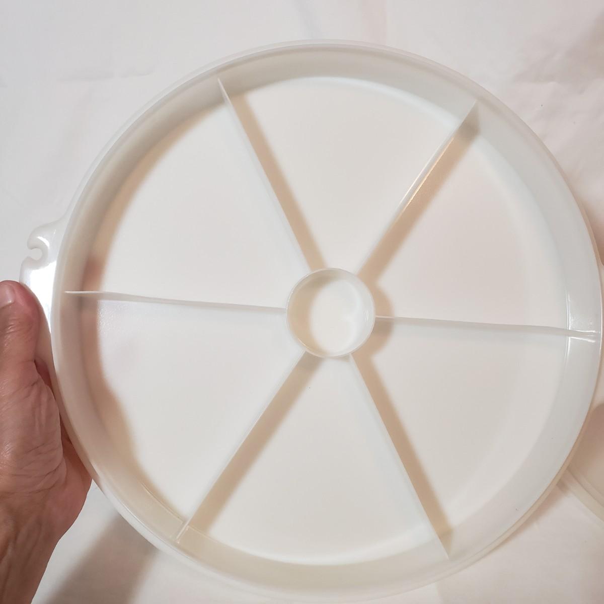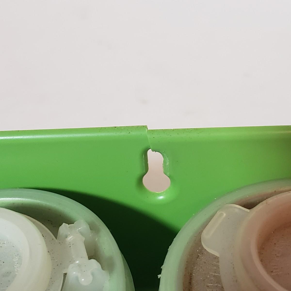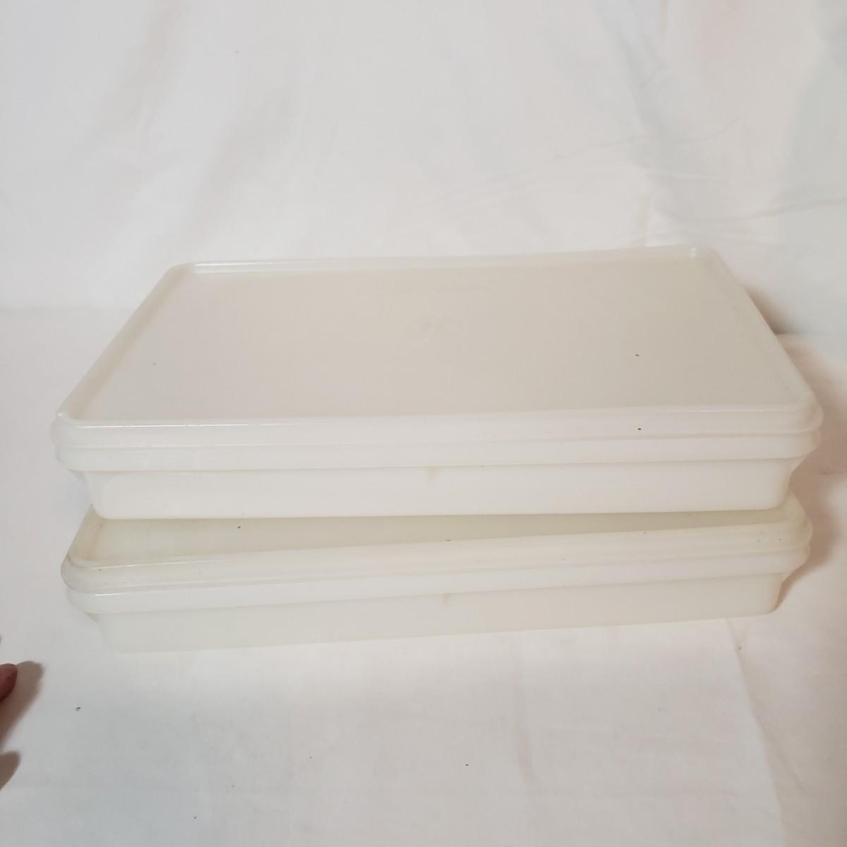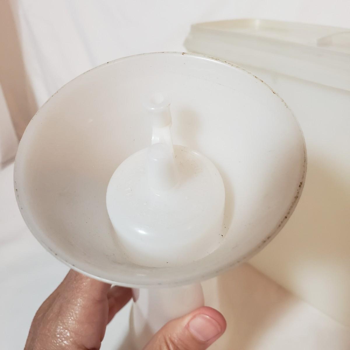 Vintage Tupperware, just like your Mom had! The gems are the green four piece spice racks! There are eight in total. They can hang inside a cabinet! One has the middle hole for hanging broke, but the two ends will work! The deviled egg holder measures 9" x 11" x 3"H. The powder sugar dispenser has a grinding handle for perfect power dusting. See pictures for details.