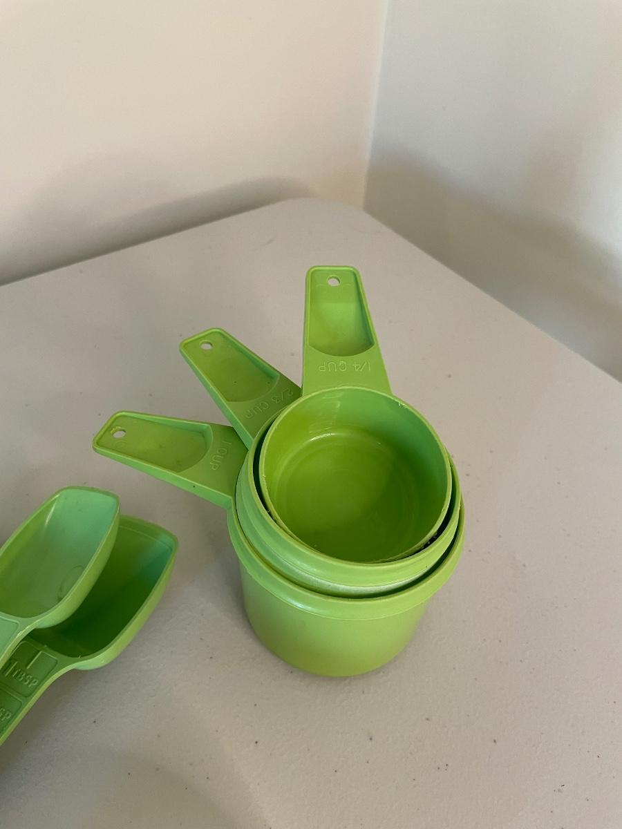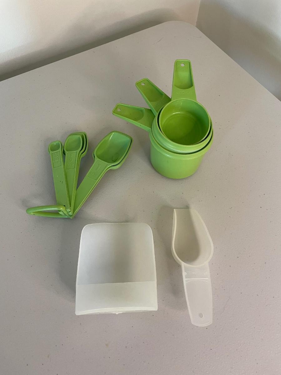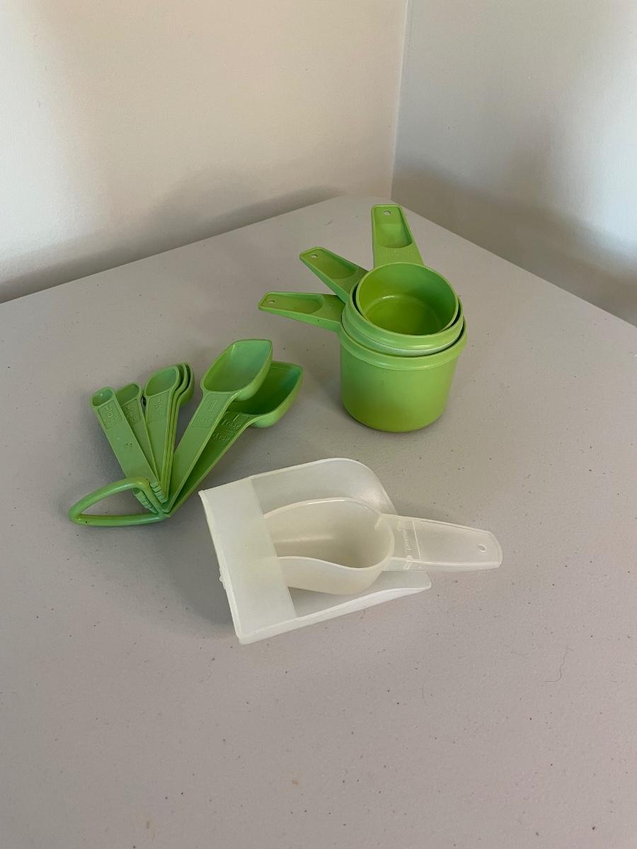 This lot includes the vintage mini flour scoop and canister scoop as well.