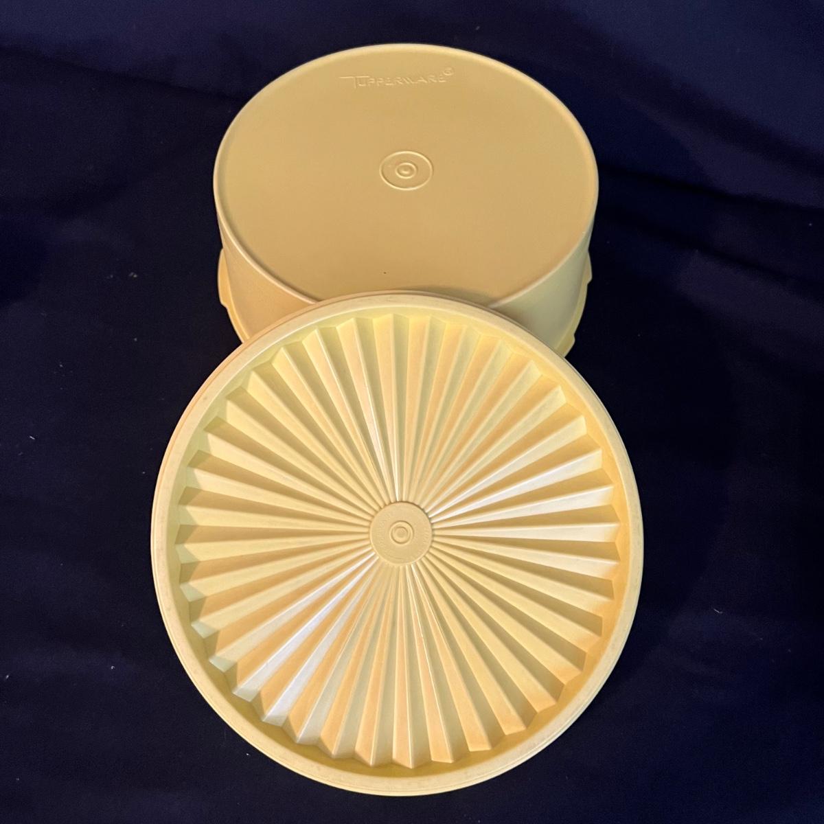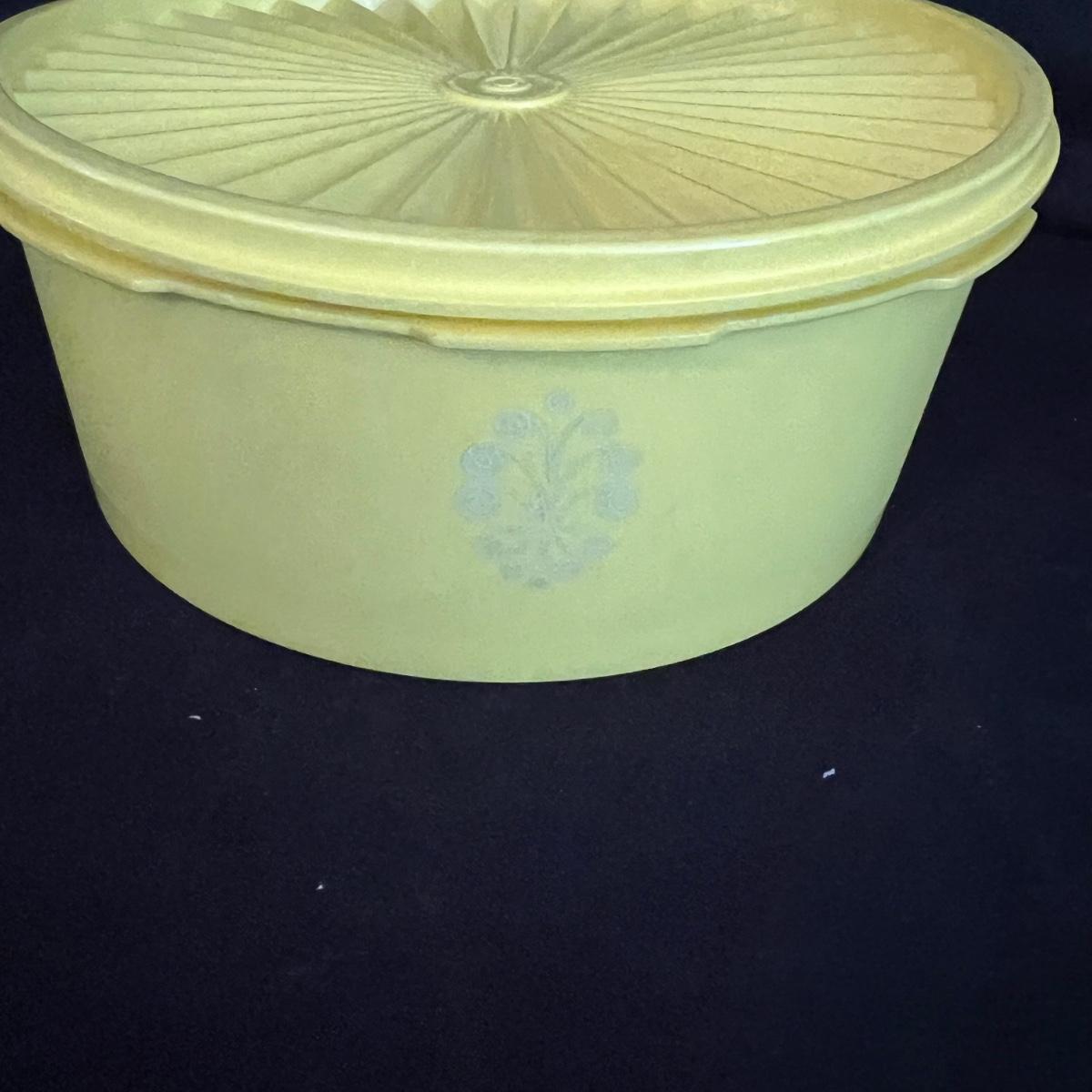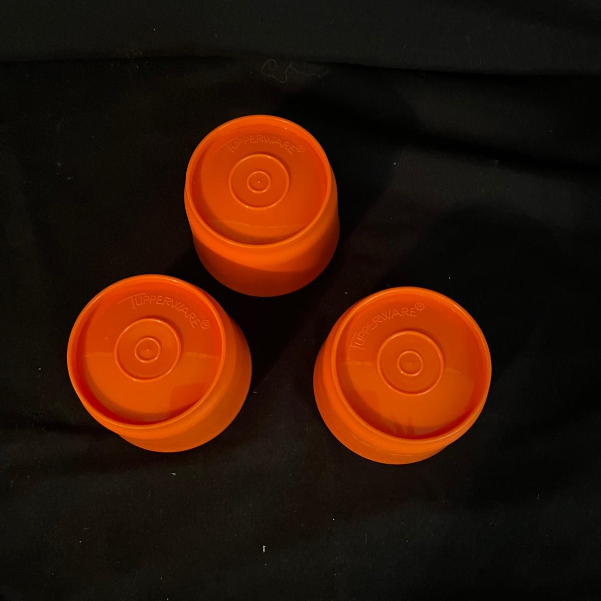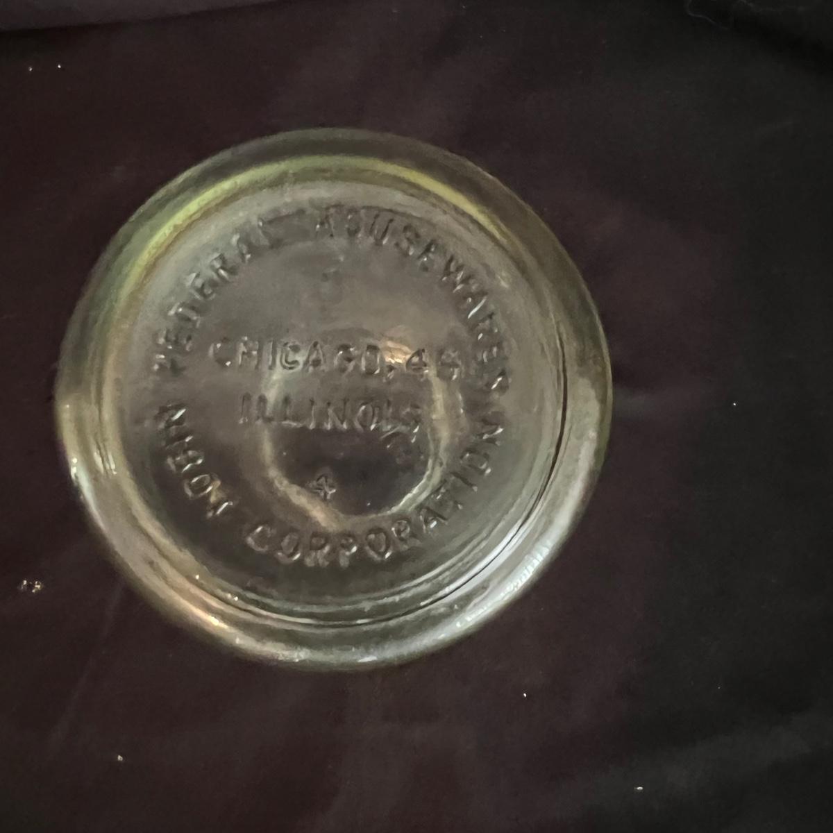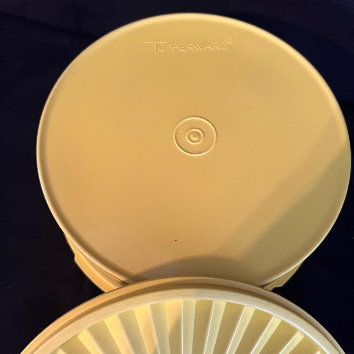 Vintage Federal House Chicago hand crank glass and plastic coffee grinder in green. Also seven vintage Tupperware storage containers. Two covered bowls 4.5”D x 3.5”H (one only one lid), three small cup containers measuring 2.75”D x 2”H (only one lid), one covered 8”D x 3.25”H round bowl and one uncovered 6” square by 3.5”H. Plastic salt and pepper shakers and a juicer. Also a glass and plastic chopper.