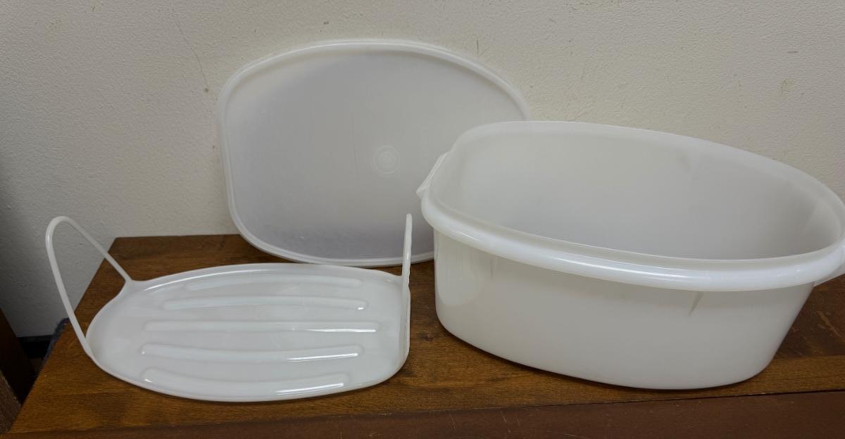 Vintage Tupperware Roast Flavor Saver Set Ham Turkey Keeper White #487 plus Insert