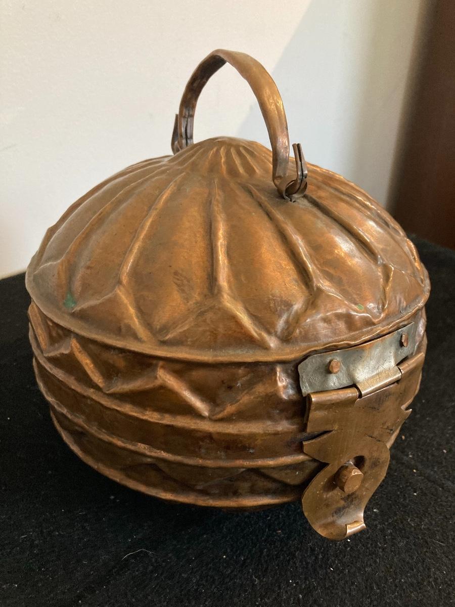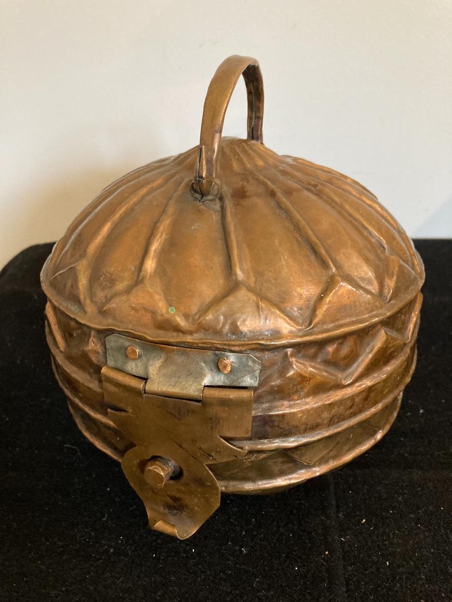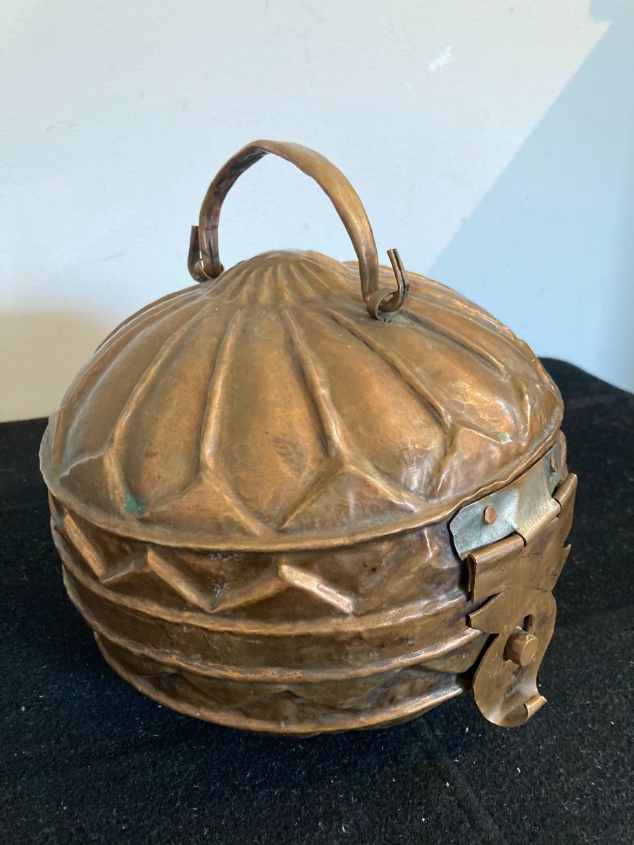Vintage Turkish Brass Round Globe Lunchbox and Latch