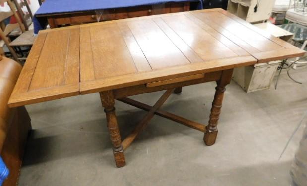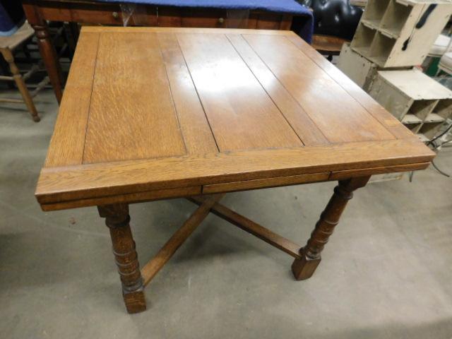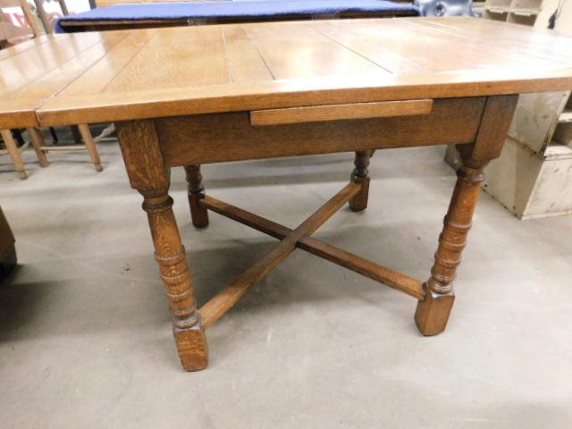 Vintage Turned Leg Slide Leaf Extending Dining Table 5" with Leaves Out